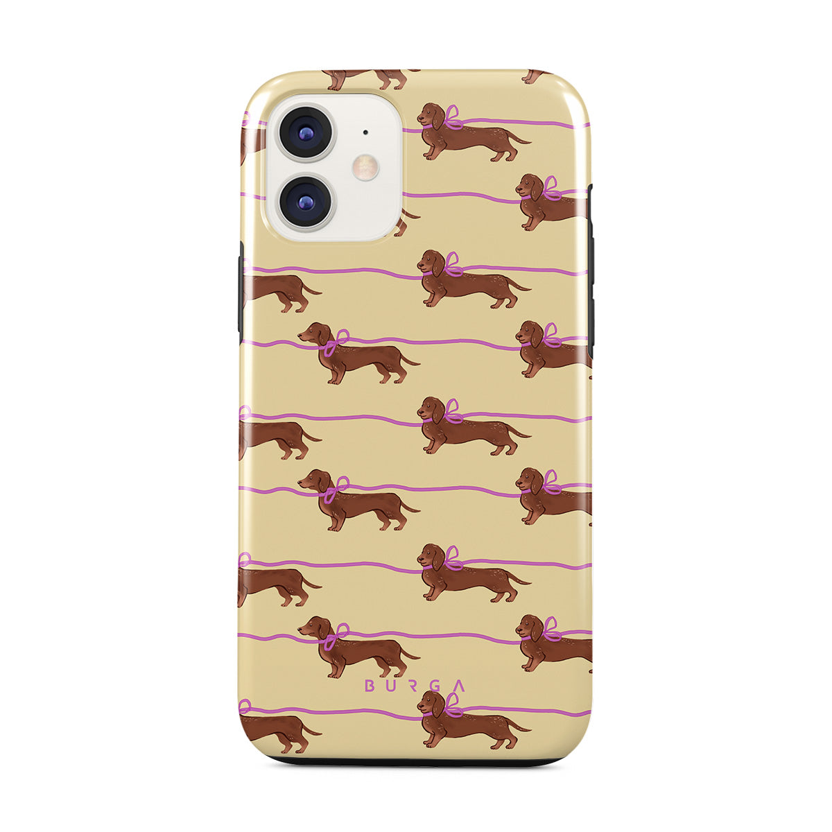 This iPhone 11 phone case design doesn’t believe in time, only vibes. It features sassy sausage dogs with bows who, like you, are running 15 minutes behind—and blaming Mercury.