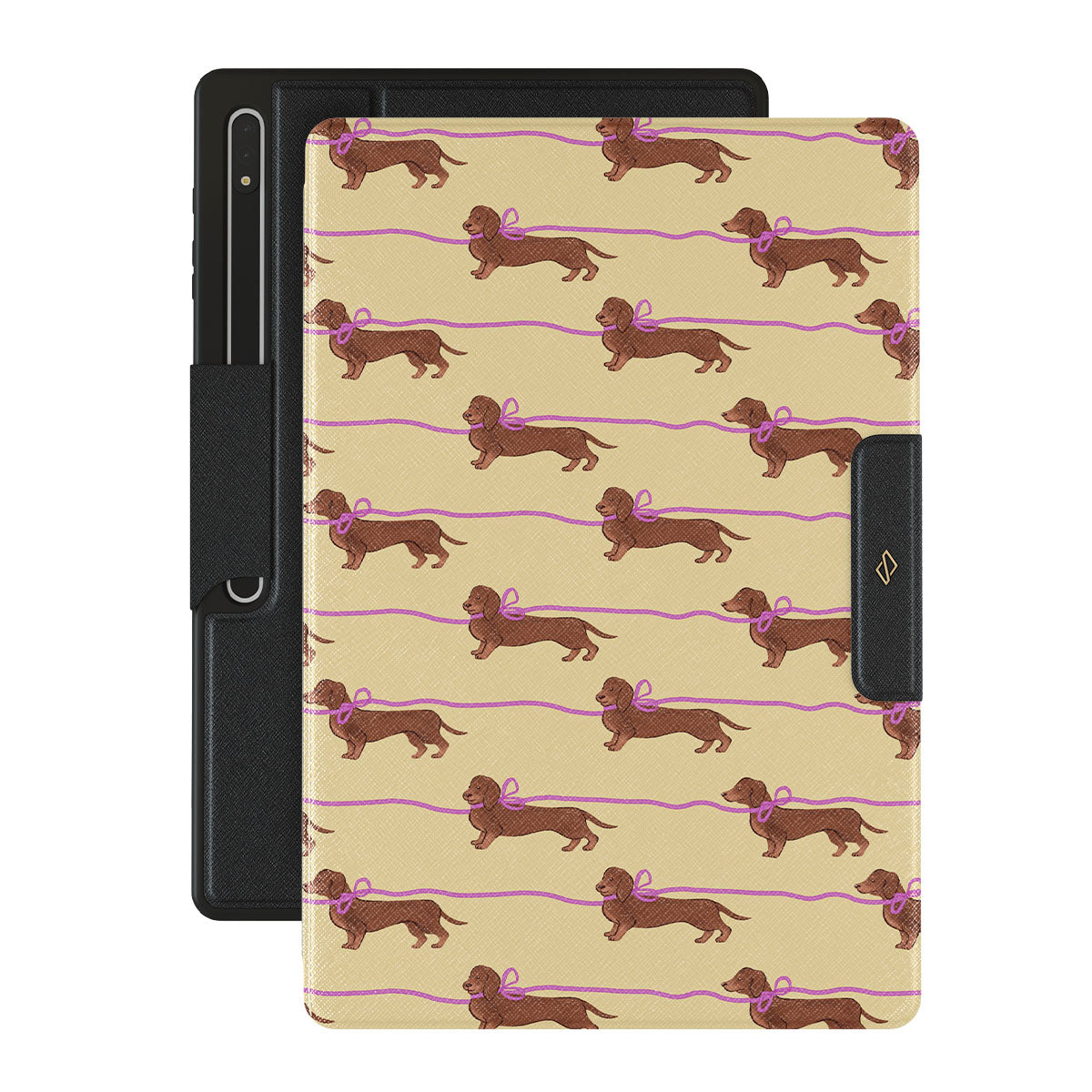 This Samsung Galaxy Tab S9 Ultra design doesn’t believe in time, only vibes. It features sassy sausage dogs with bows who, like you, are running 15 minutes behind—and blaming Mercury.