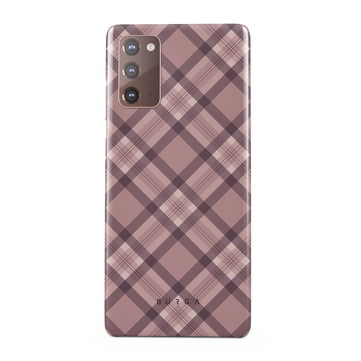 Made for those who hustle hard and look sharp. Our ASAP Samsung Galaxy Note 20 4G / 5G phone case design features a sleek rosé-gray background with diagonal plaid in soft grey and deep pink—mixing modern flair with understated elegance. For the pros who know that style and speed go hand-in-hand.