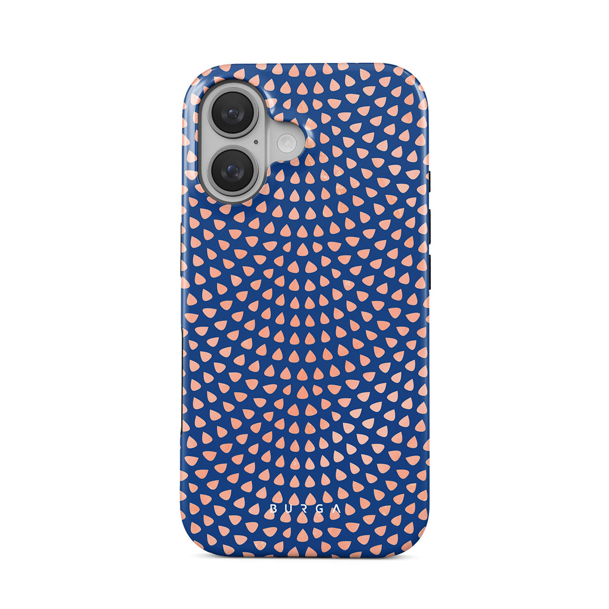 Rose gold teardrops meet a deep shade of blue in our Azure Waters iPhone 16 Plus phone case and create the duo worth taking with you every evening out. Add a touch of strictness with the symmetrical teardrops pattern paving the way and keeping your phone out of harm's way with the case that is as protective as it is beautiful.