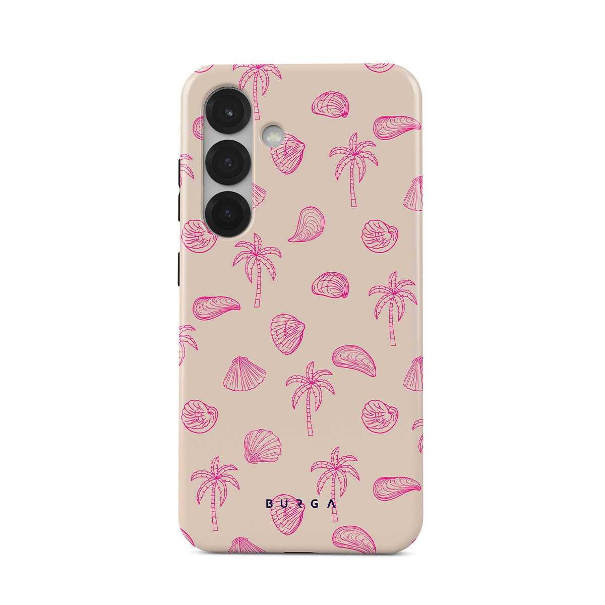 Lovely, beachy, and pink is what we can say about our Beach Please Samsung Galaxy S25 Plus phone case design. The playful pattern of palms and seashells will look cute in your summer selfies. Add that playful touch to your everyday life and keep your phone safe from scratches the sand can make!