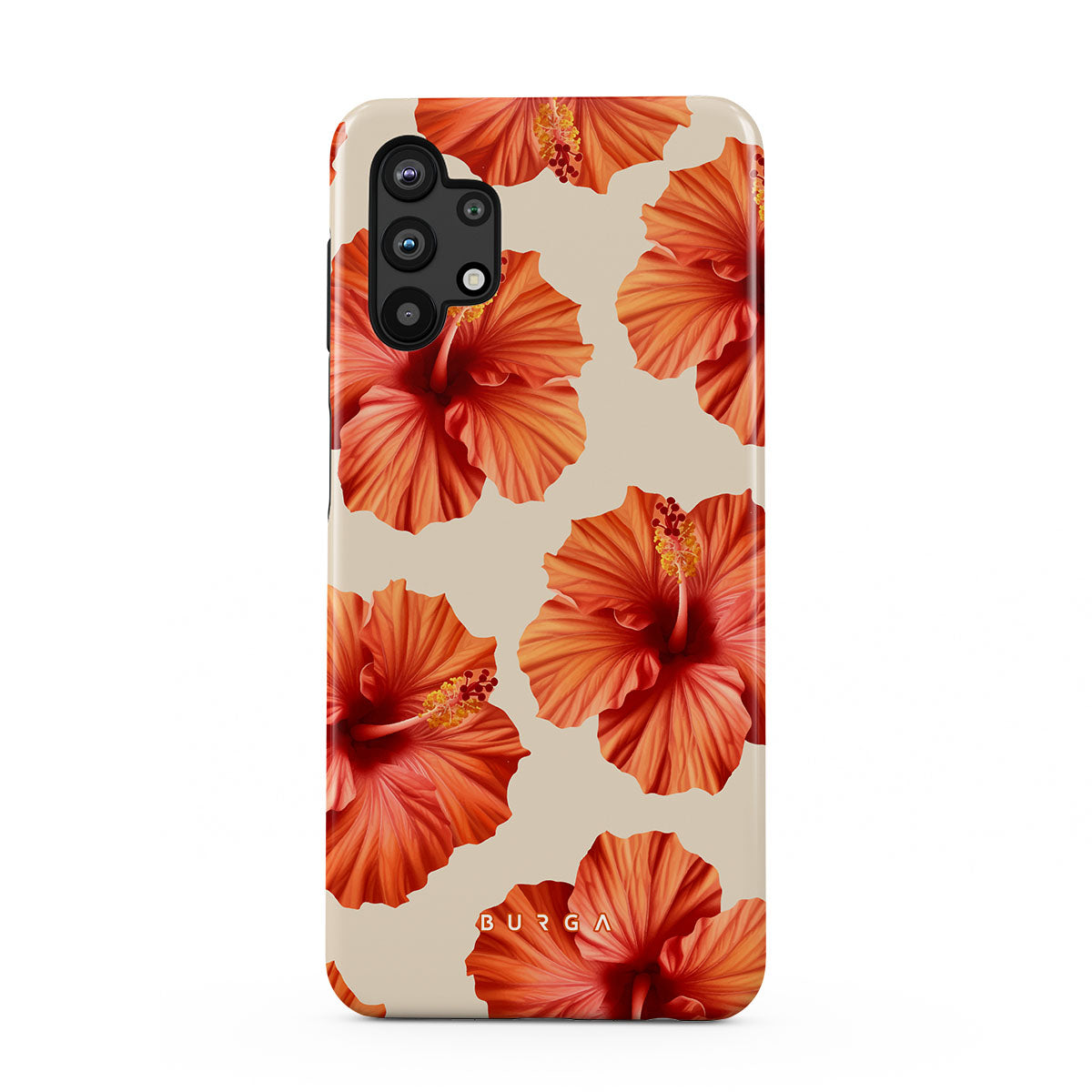Transport yourself to a lush tropical escape with Bonita. Featuring bold, beautiful hibiscus blooms that pop against a creamy backdrop, this Samsung Galaxy A32 5G phone case design is perfect for those who dream of vibrant, floral beauty and exotic adventures.