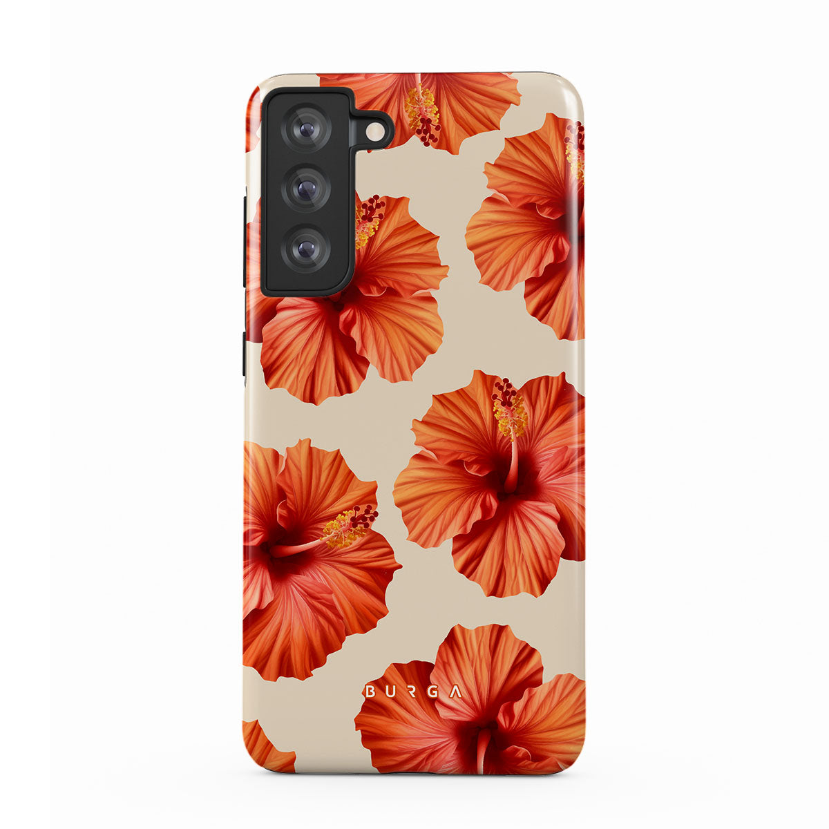 Transport yourself to a lush tropical escape with Bonita. Featuring bold, beautiful hibiscus blooms that pop against a creamy backdrop, this Samsung Galaxy S21 FE phone case design is perfect for those who dream of vibrant, floral beauty and exotic adventures.