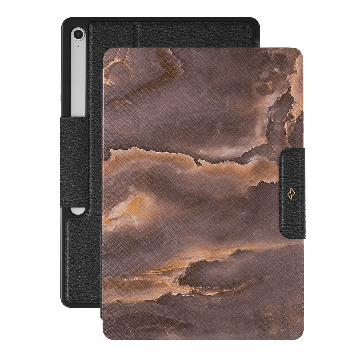 The bonfire starts to flicker – it's time to gather more wood. With a brown marble Samsung Galaxy Tab S10+ FE folio case design inspired by a bonfire flame, carry a feeling of content and excitement wherever you go. The protective case is needed in a hike, but a stylish accessory will match your aesthetic even on a lazy Sunday.