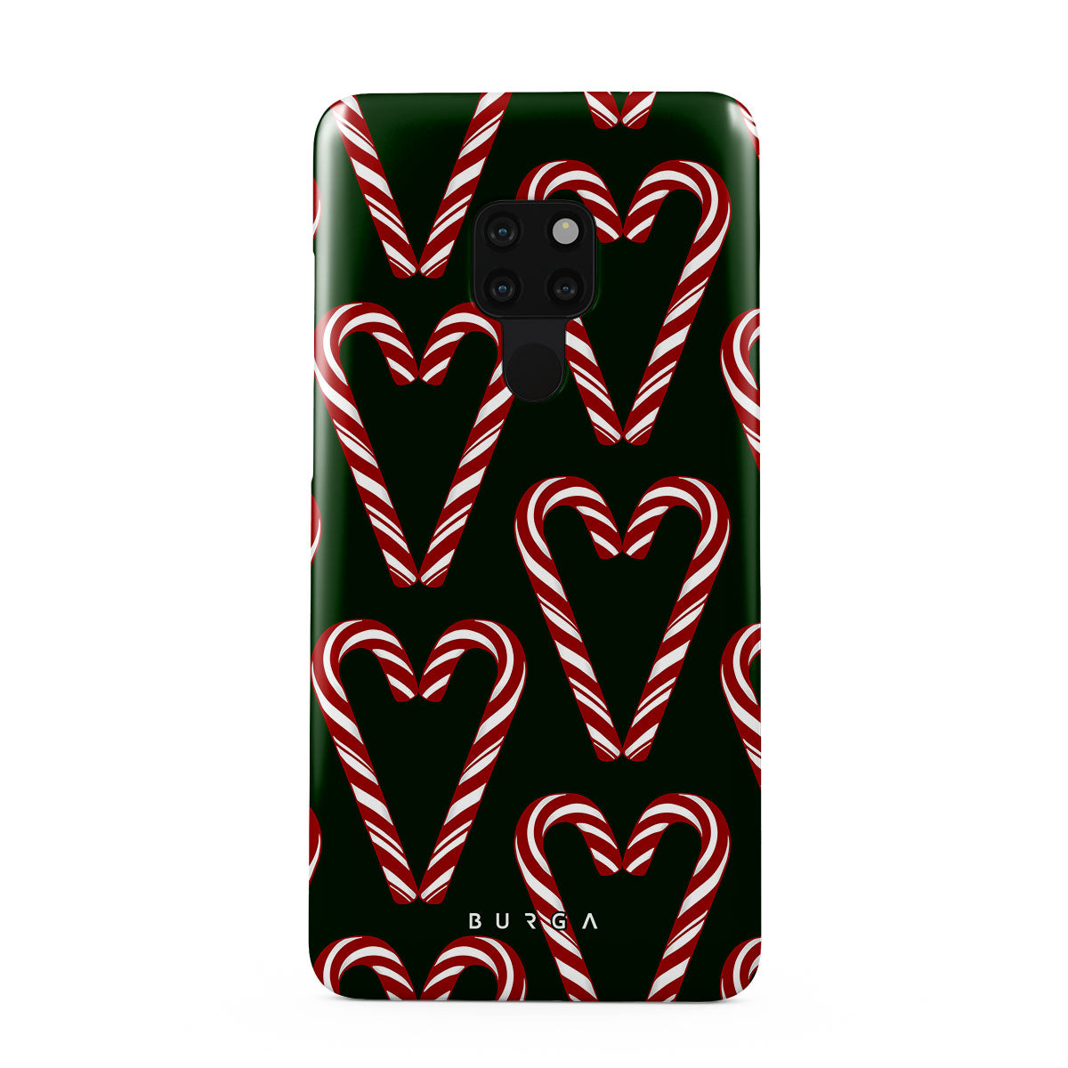 Vibrant and playful, our Candy Cane Huawei Mate 20 Case phone case design showcases candy cane heart motifs against a dark green background—a delightful choice for those who love a touch of whimsy and nostalgia.
