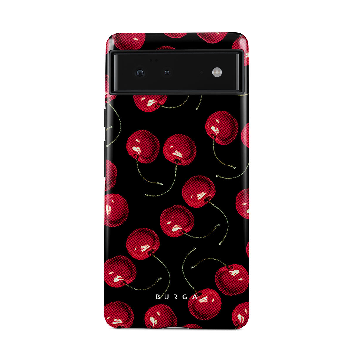 On a deep black background, rich red cherries stand out. Tempting and audacious, our Cherrybomb Google Pixel 6 phone case design is perfect for anyone who likes to keep things simple yet striking.