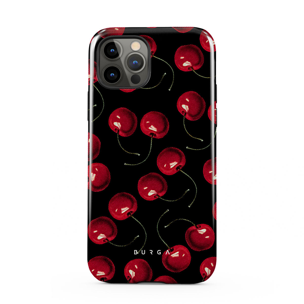 On a deep black background, rich red cherries stand out. Tempting and audacious, our Cherrybomb iPhone 12 Pro phone case design is perfect for anyone who likes to keep things simple yet striking.