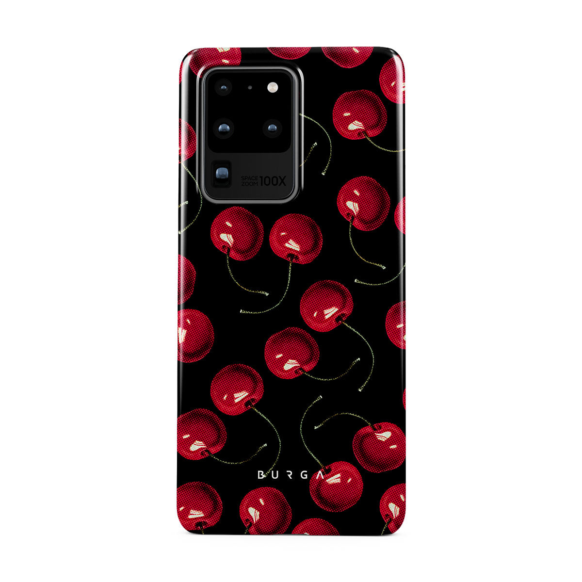 On a deep black background, rich red cherries stand out. Tempting and audacious, our Cherrybomb Samsung Galaxy S20 Ultra 4G / 5G phone case design is perfect for anyone who likes to keep things simple yet striking.