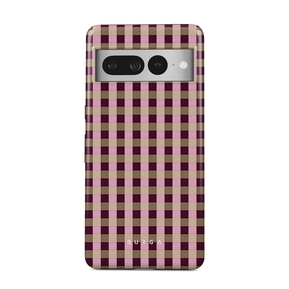 This design features: pink and burgundy plaid pattern, modern checkered style.