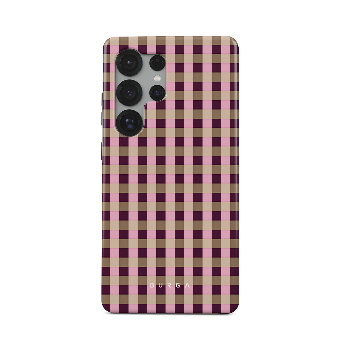 This design features: pink and burgundy plaid pattern, modern checkered style.
