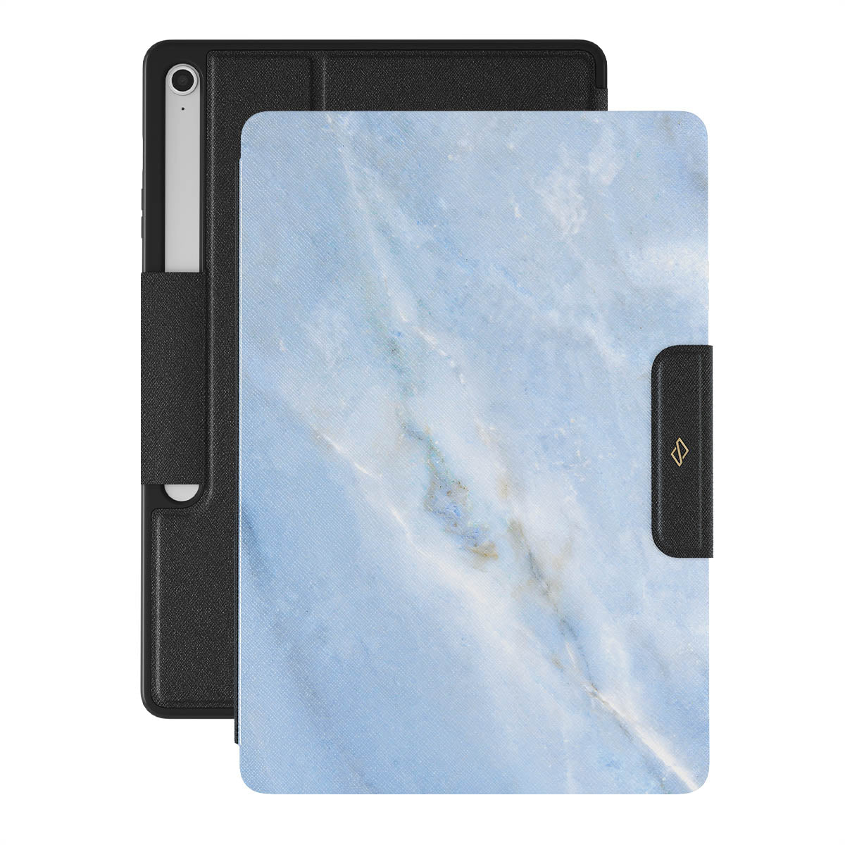 Bright, blue, and beautiful. The sky surrounds us all. Look up, remember and cherish the days of laying on the grass and counting the clouds. Take this feeling of vivid imagination with a protective Samsung Galaxy Tab S10+ FE folio case designed and inspired by the shapeshifting clouds.
