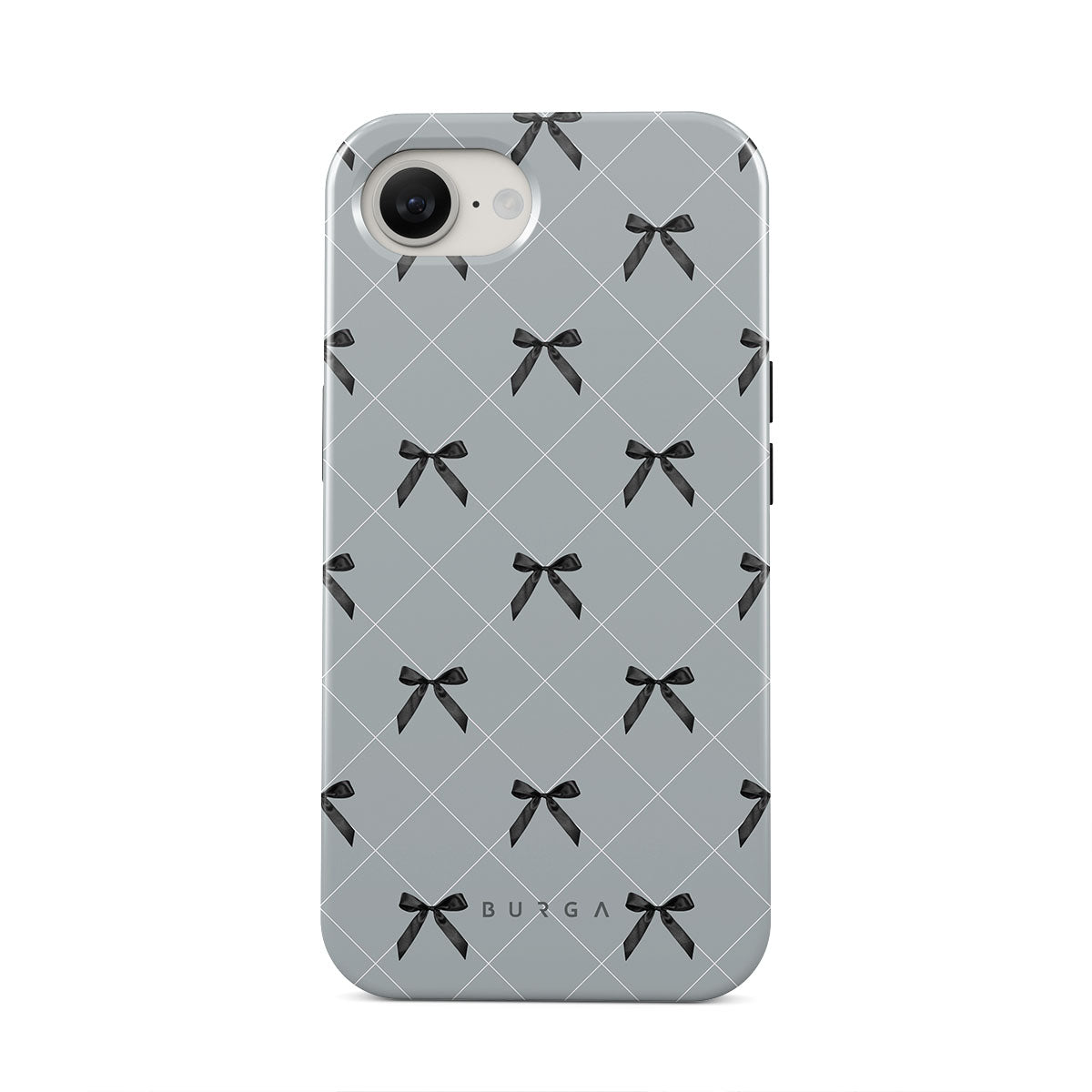 A subtle hint to a world of dance and soft melodies. Crisscrossing bows over a muted gray tone capture the flirtatious essence of the coquette-core aesthetic. Playful and sweet, our Coquette iPhone 16e phone case design is perfect for those who find beauty in the details.