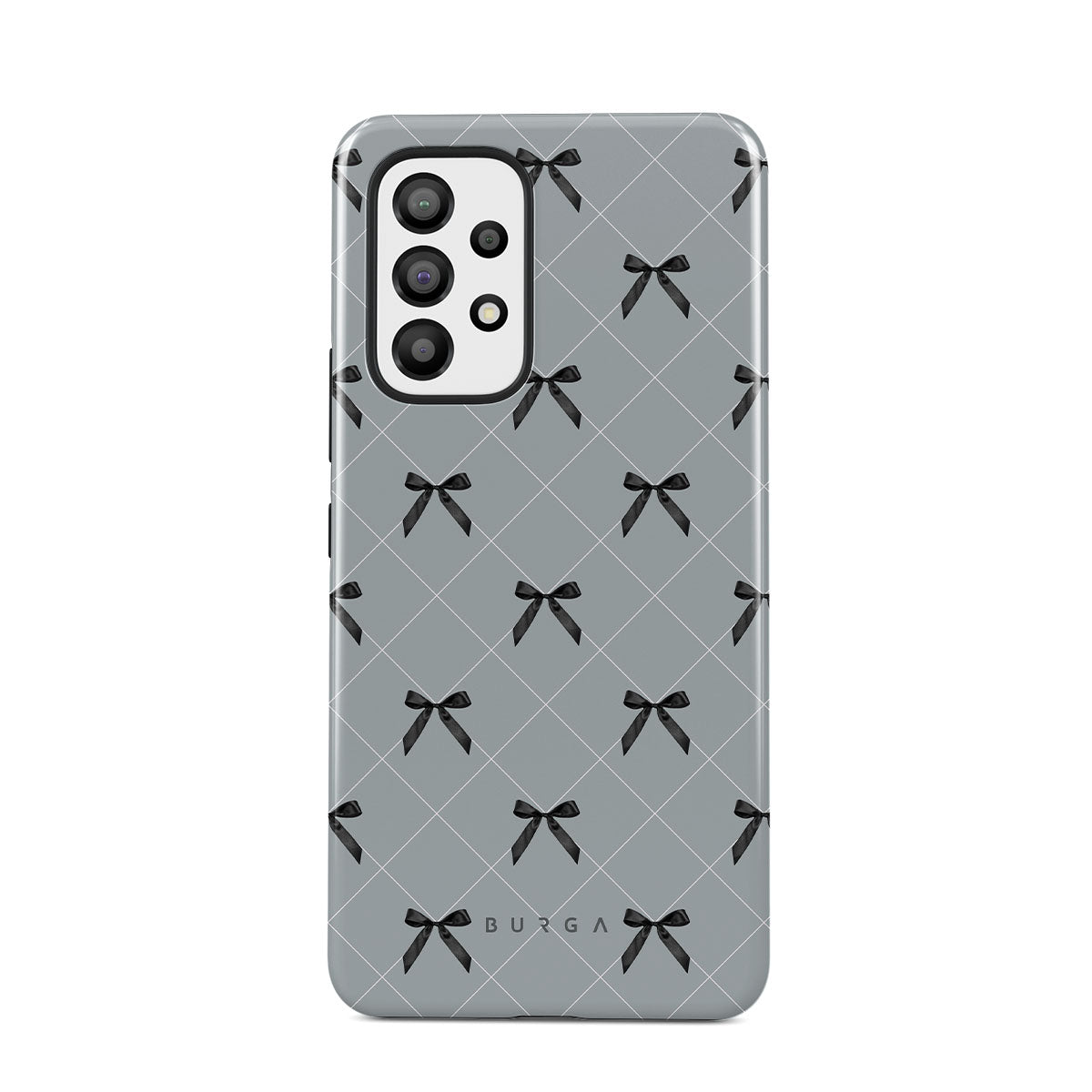 A subtle hint to a world of dance and soft melodies. Crisscrossing bows over a muted gray tone capture the flirtatious essence of the coquette-core aesthetic. Playful and sweet, our Coquette Samsung Galaxy A23 4G / 5G phone case design is perfect for those who find beauty in the details.