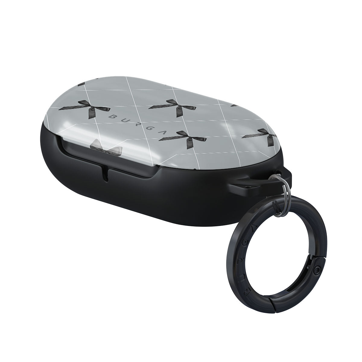 A subtle hint to a world of dance and soft melodies. Crisscrossing bows over a muted gray tone capture the flirtatious essence of the coquette-core aesthetic. Playful and sweet, our Coquette Samsung Galaxy Buds Plus case cover design is perfect for those who find beauty in the details.