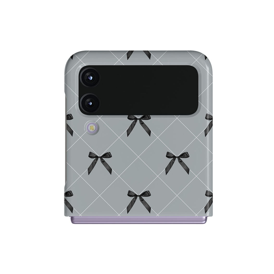 A subtle hint to a world of dance and soft melodies. Crisscrossing bows over a muted gray tone capture the flirtatious essence of the coquette-core aesthetic. Playful and sweet, our Coquette Samsung Galaxy Z Flip 4 phone case design is perfect for those who find beauty in the details.