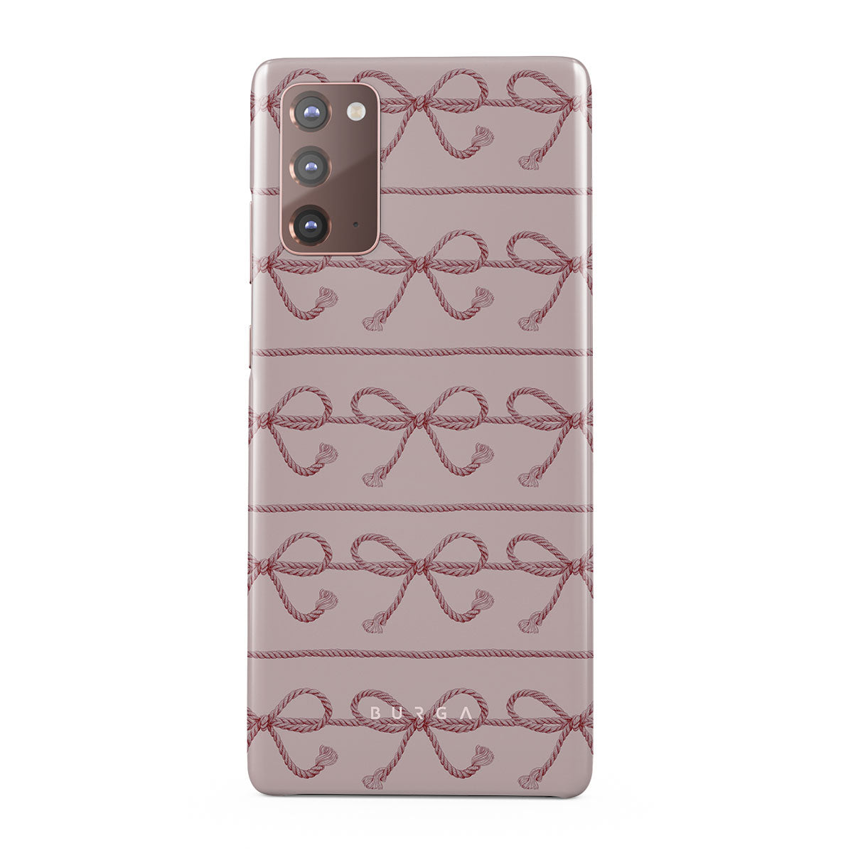 This design features: pink bows, pink background, ropes, playful pattern.