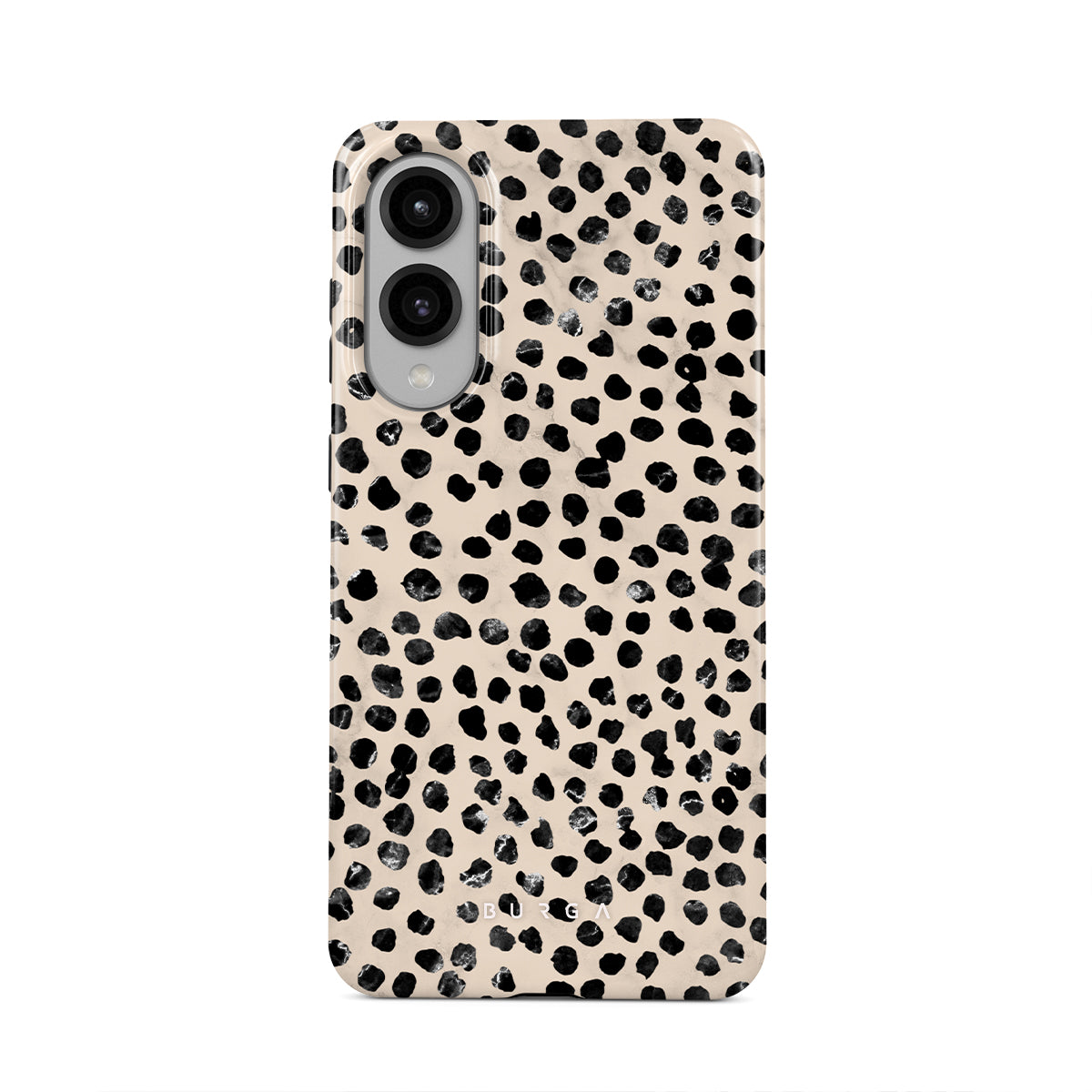 Cute cream color as a background for the unique pattern of asymmetrical black spots creates a real eye-catcher in our Almond Latte Samsung Galaxy S25 Edge phone case. The spotted pattern adds a touch of luxury to your phone, while the case's hard-shell nature offers much-needed protection making it a popular choice between fashion lovers.