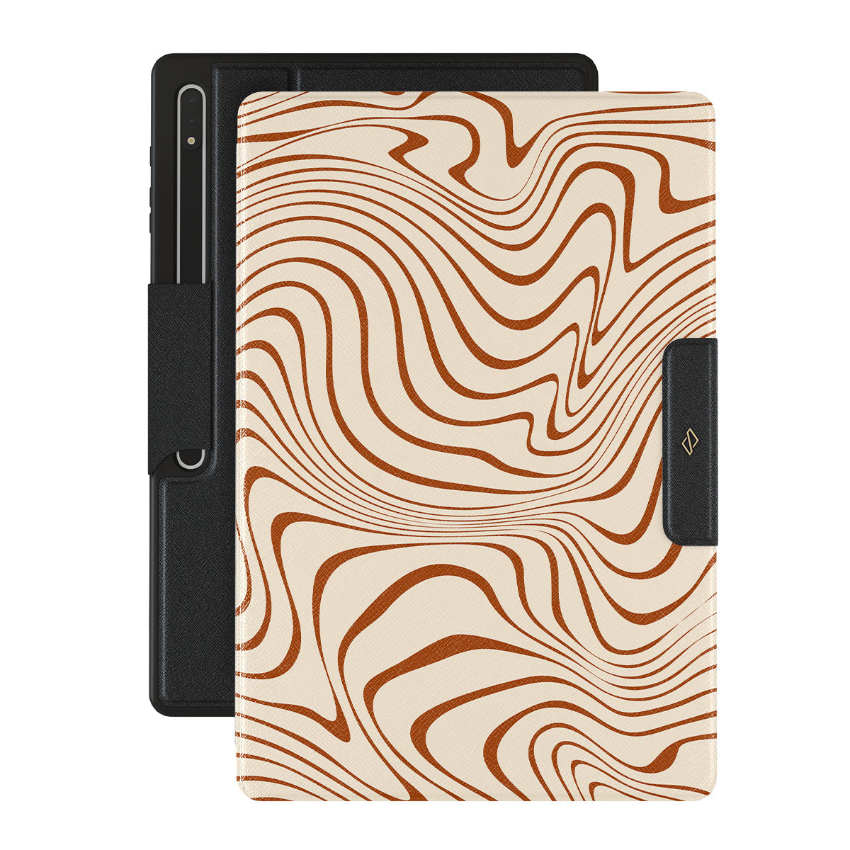 The title of our Déjà vu Samsung Galaxy Tab S8 Ultra folio case design is no accident! This design's feeling can only be described as the Déjà vu itself. The crème color meets the warm brown in a mesmerizing waves pattern that will surely add a touch of old times charm to your device.