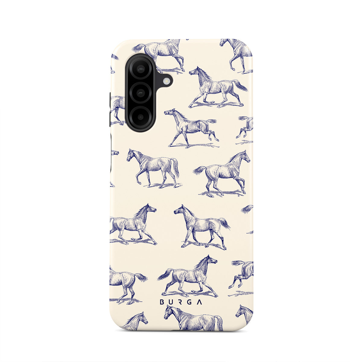 Introducing our Derby Race Samsung Galaxy A26 5G phone case design—a portrait of elegance in motion on a soft nude canvas. Engraved in delicate blue contours, galloping horses dance upon the wind, frozen in an exquisite moment of grace.