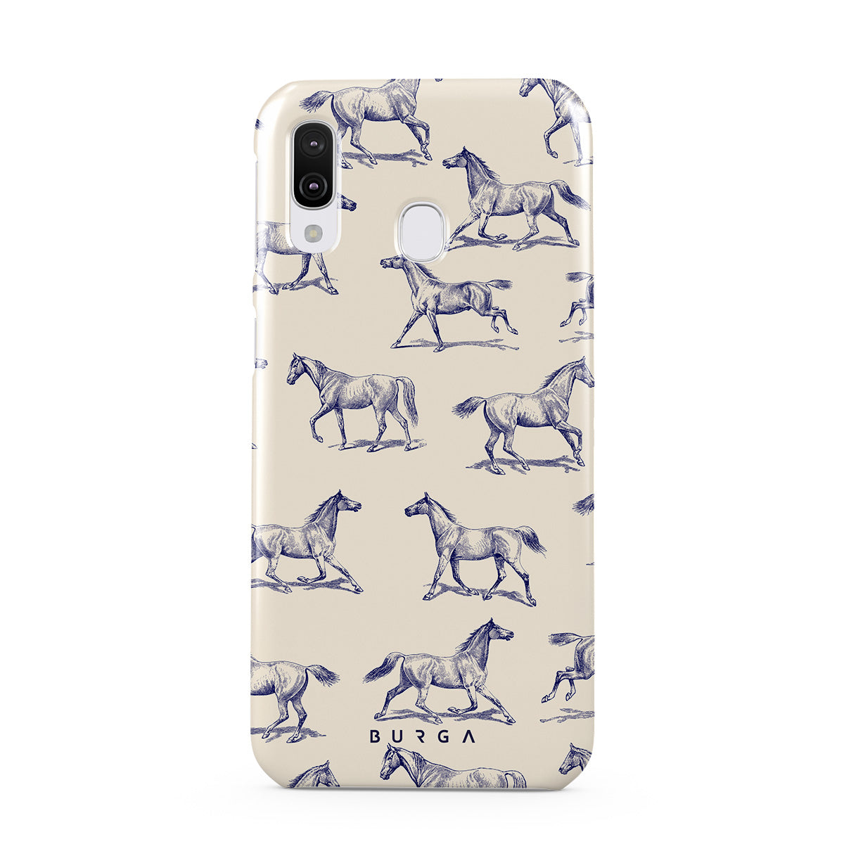 Introducing our Derby Race Samsung Galaxy A40 phone case designa portrait of elegance in motion on a soft nude canvas. Engraved in delicate blue contours, galloping horses dance upon the wind, frozen in an exquisite moment of grace.