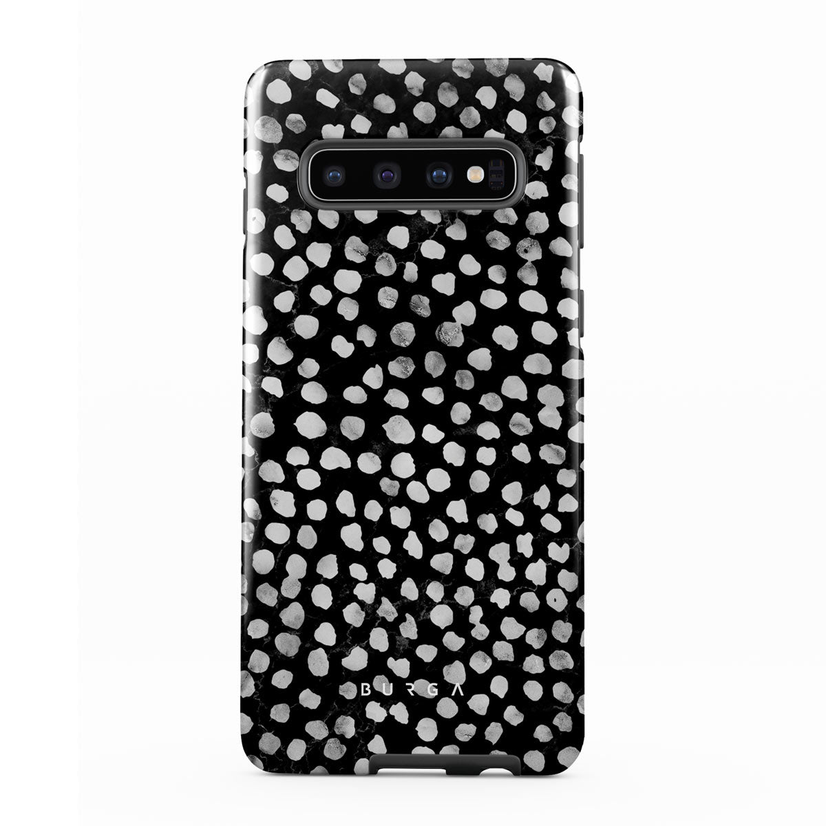 Dark, endless with flickering stars. Keep a part of the night sky in your pocket with Samsung Galaxy S10 phone case cover inspired by the sky above us. The classy dotted pattern found on the case is a must in every accessory lover's collection.