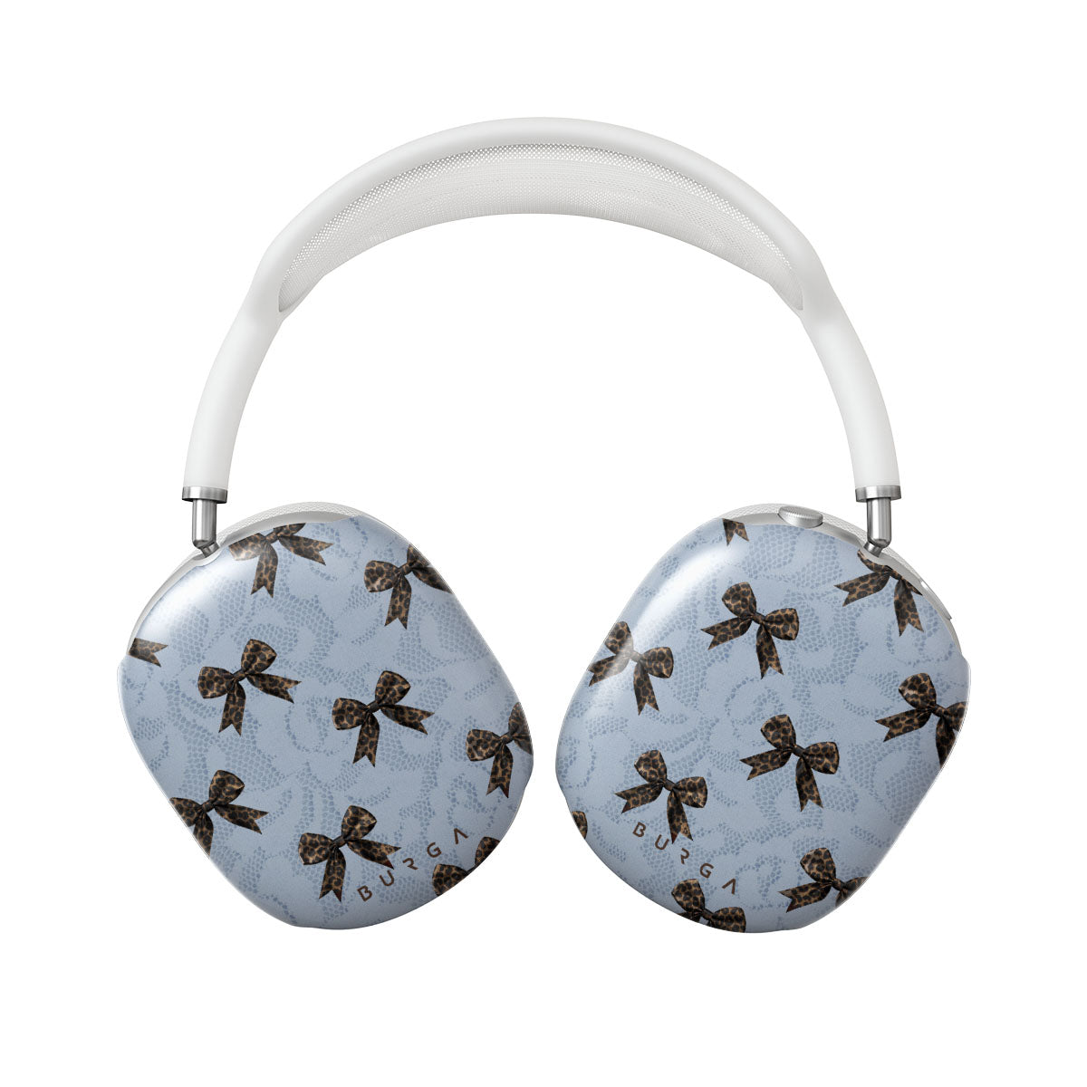 For those who command attention with subtle elegance, our Fashionista AirPods Max case cover design is your go-to. A soft blue background, accented by dark grey bows and subtle lace patterns, exudes polished, effortless style. It's quiet confidence with a hint of charm.