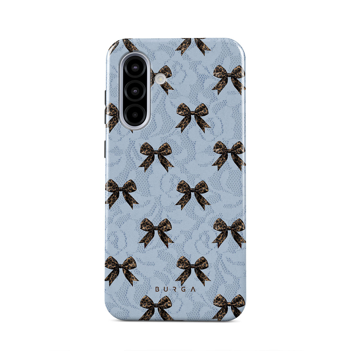 For those who command attention with subtle elegance, our Fashionista Samsung Galaxy A56 5G phone case design is your go-to. A soft blue background, accented by dark grey bows and subtle lace patterns, exudes polished, effortless style. It's quiet confidence with a hint of charm.