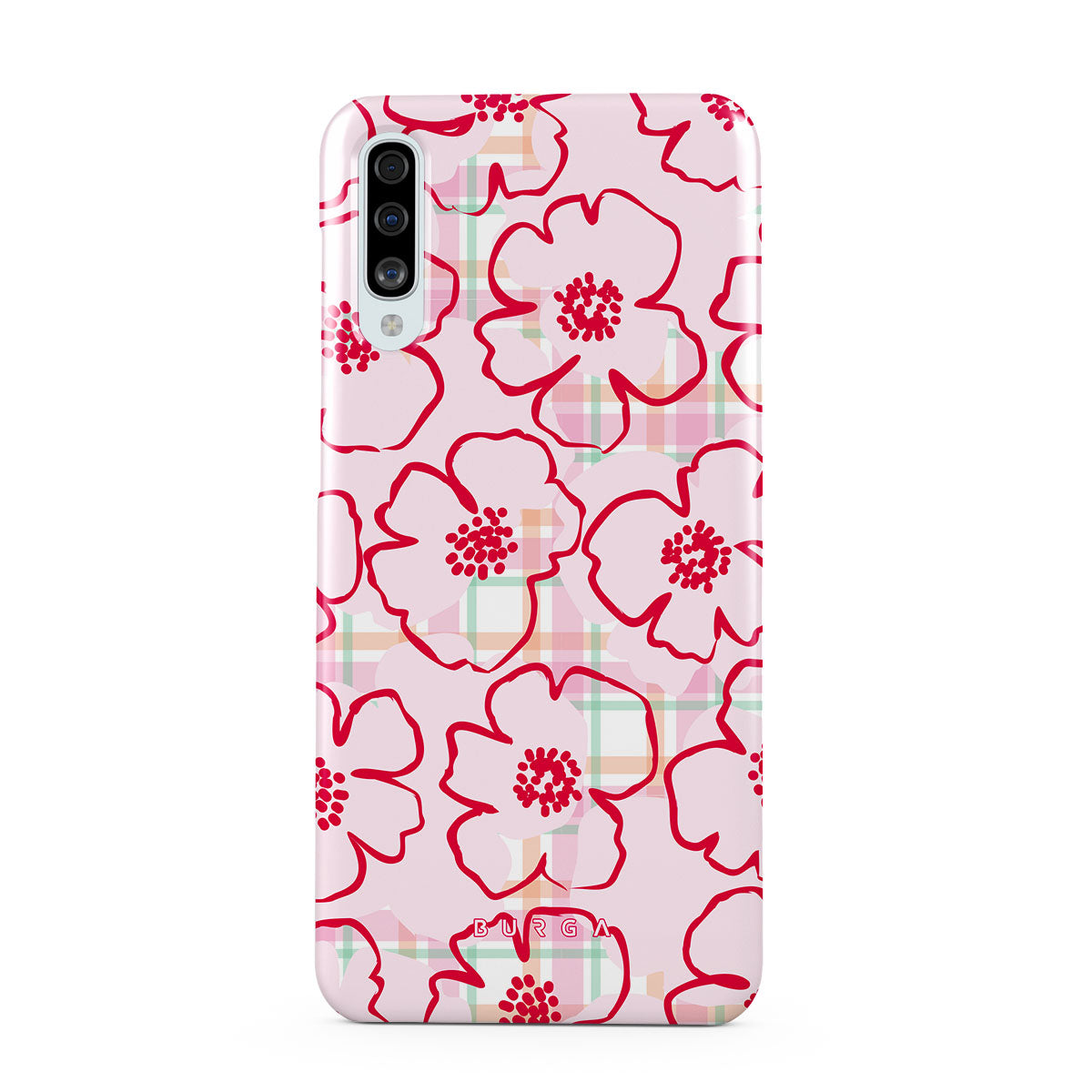 Pink flowers bloom from this Samsung Galaxy A50 phone case design—just like the ones you’d pick and put in your hair, simple and pretty, turning every walk through the garden into a fairy tale.
