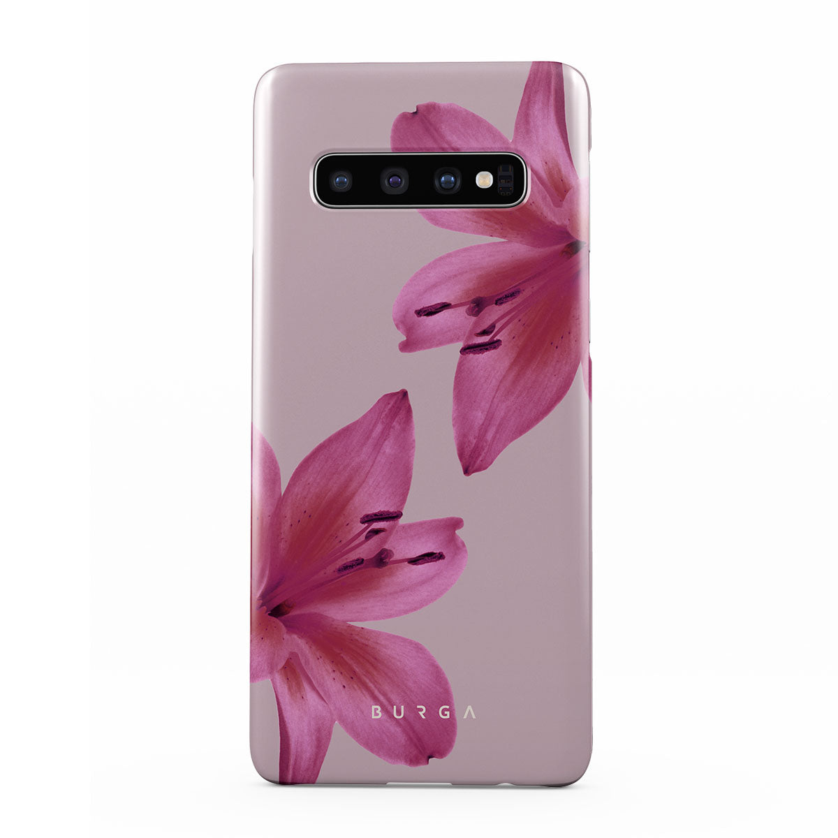 A gentle hush of pink forms where soft lilies sway. Their tender petals — a silent ode to the delicate dance of life. The Fragile Beauty Samsung Galaxy S10 Plus phone case design invites you to lean into the soft embrace of nature, letting its subtle rhythms guide your journey.