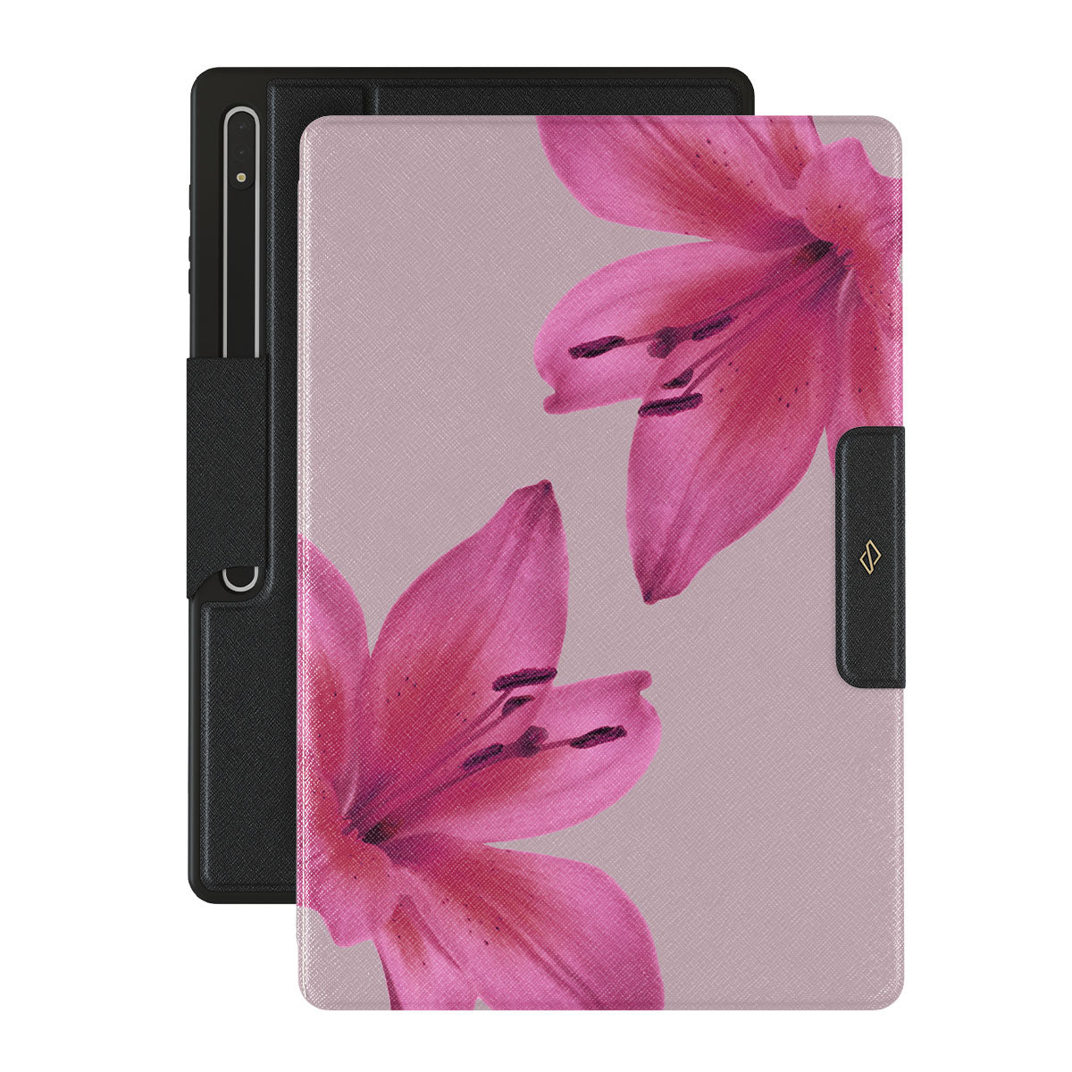 A gentle hush of pink forms where soft lilies sway. Their tender petals — a silent ode to the delicate dance of life. The Fragile Beauty Samsung Galaxy Tab S10 Ultra folio case design invites you to lean into the soft embrace of nature, letting its subtle rhythms guide your journey.