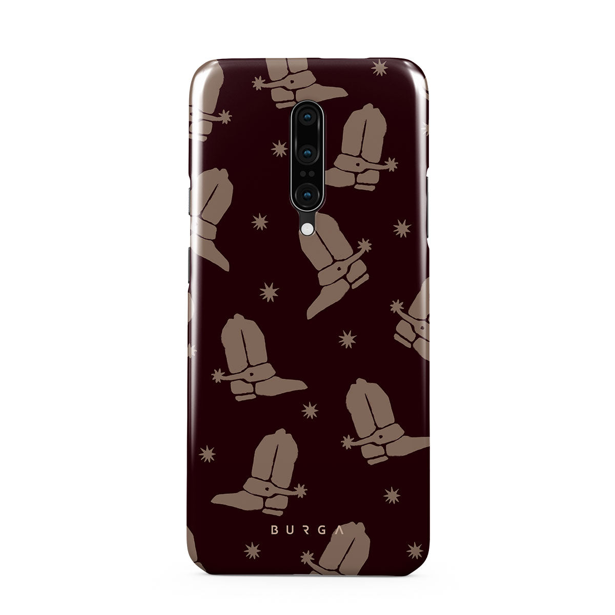 Say Howdy to this charming OnePlus 7 Pro / 7T Pro phone case design. Cowboy boots and stars dance across a deep brown background, celebrating the essence of western life. Perfect for those who embrace their free spirit.