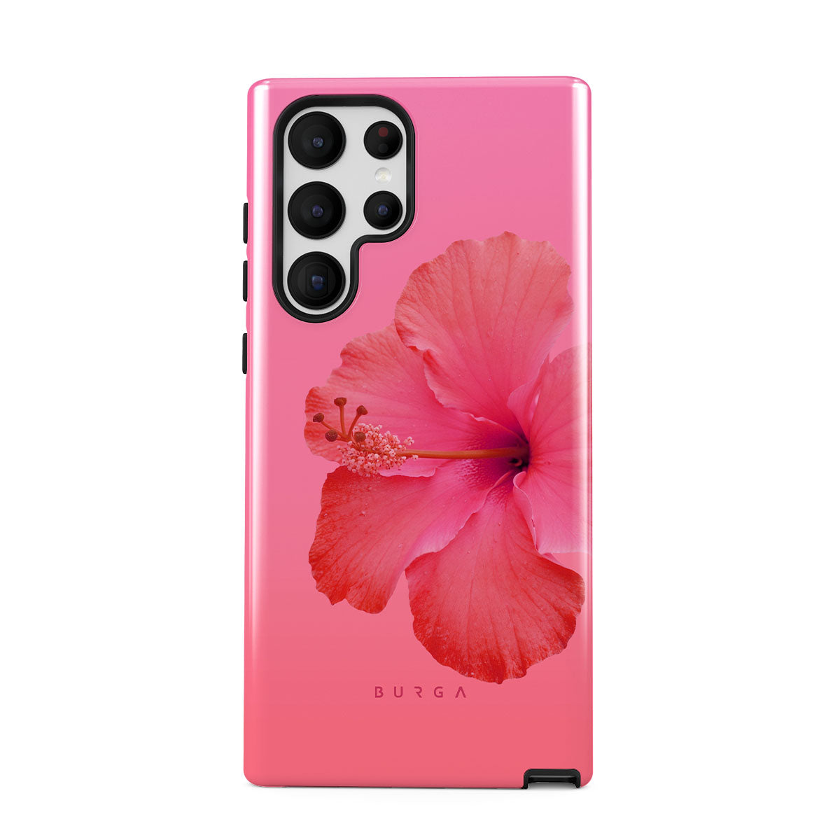 Our Island Girl Samsung Galaxy S22 Ultra phone case design bursts with the fiery red of a hibiscus in full bloom against a dreamy pink backdrop. Perfect for those who embody the spirit of a sun-kissed island retreat.