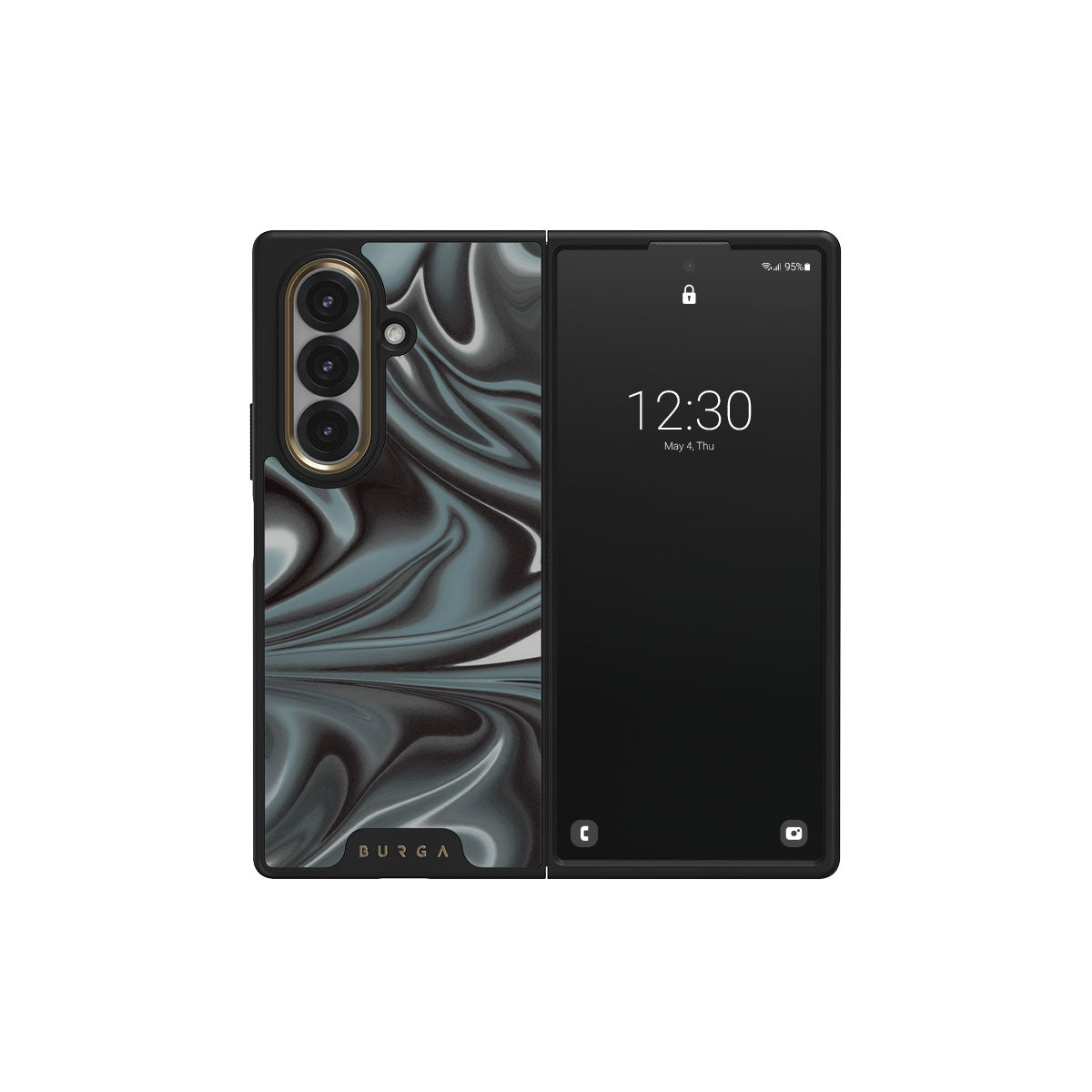 In our Lightning Strike design, black, blue, and white combine to create a daring Samsung Galaxy Z Fold 7 phone case. The seamless blend of contrasting colors creates a paint-pour-like pattern and a little piece of art that will allow you to transform your phone into one too!