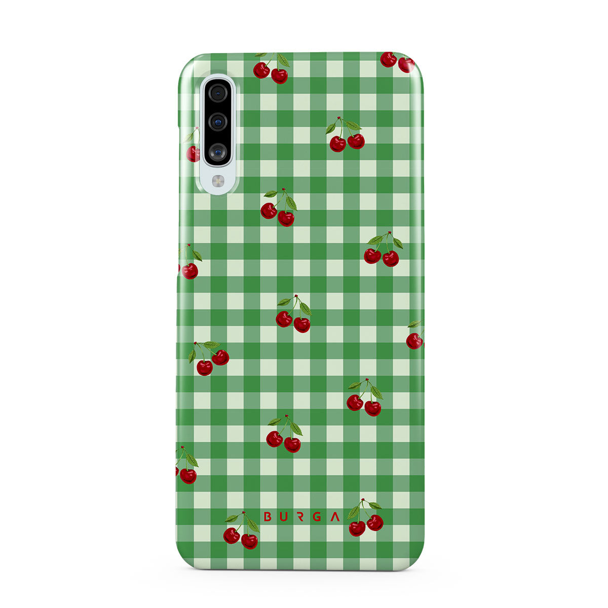 The Little Life Samsung Galaxy A50 phone case design: green checks, simple and true, like a patch of grass under a tree, where you can sit and watch the small world go by, every leaf a chapter in nature’s story.