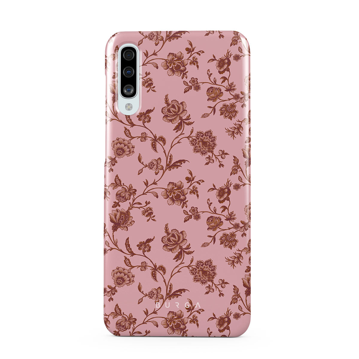 The Lover Samsung Galaxy A50 phone case design: because you're a Lover, not a fighter. Delicate floral motifs across a soft pink background capture the essence of timeless beauty and rustic elegance. Perfect for modern-day cowgirls with a vintage heart.