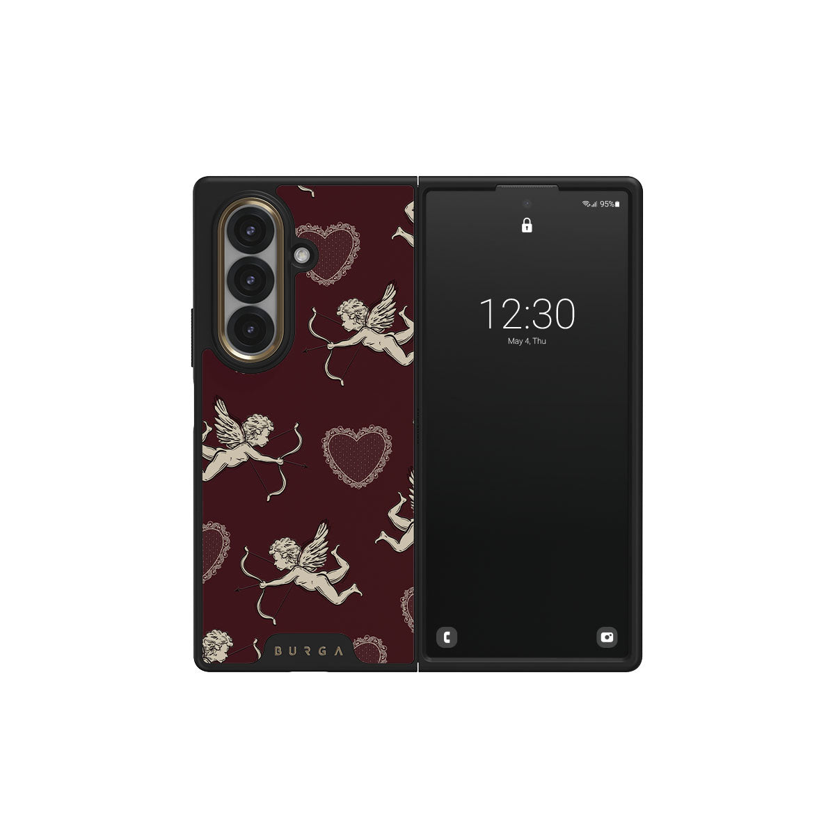 This Samsung Galaxy Z Fold 7 phone case design captures the dizzy rush of falling in love—the playful flutter of Cupids and the steady beat of crimson hearts. Lovestruck is a celebration of passion’s first spark, that wild, uncontainable energy that makes your heart race and your soul sing.