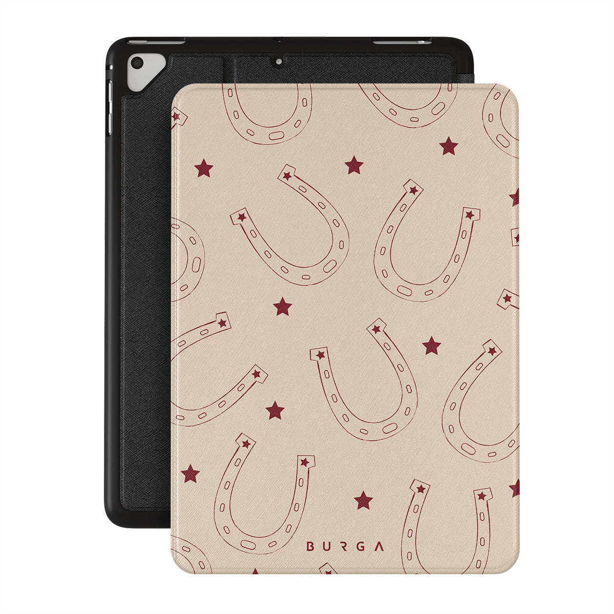 Horseshoes for luck, stars for style. Keep fortune on your side with our Lucky Charm iPad 9.7 (6th/5th Gen) folio case . This design is a playful take on traditional symbols of luck. The earthy tones make it a versatile accessory for any western-inspired outfit—and not only.