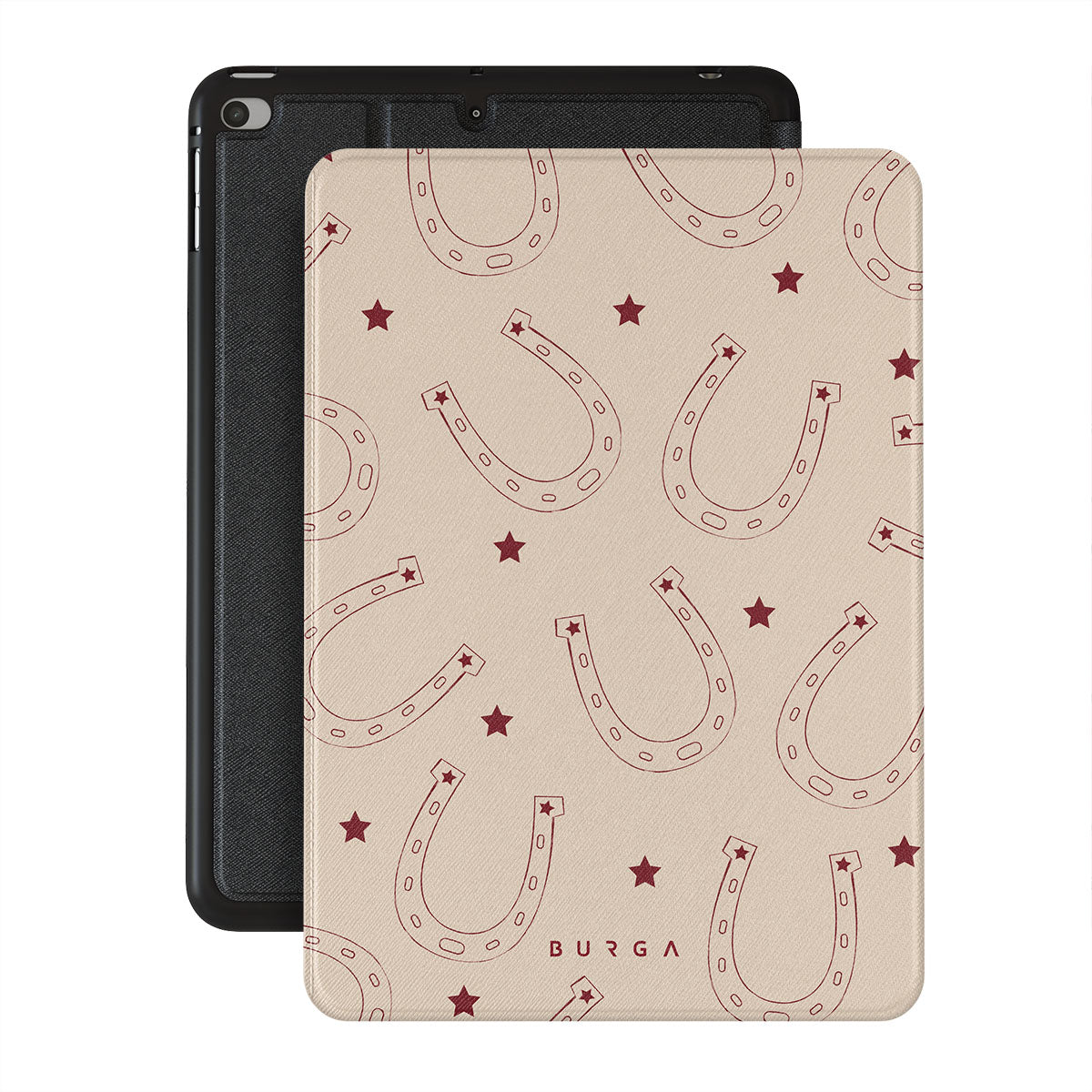 Horseshoes for luck, stars for style. Keep fortune on your side with our Lucky Charm iPad Mini 7.9 (5th Gen) folio case . This design is a playful take on traditional symbols of luck. The earthy tones make it a versatile accessory for any western-inspired outfit—and not only.