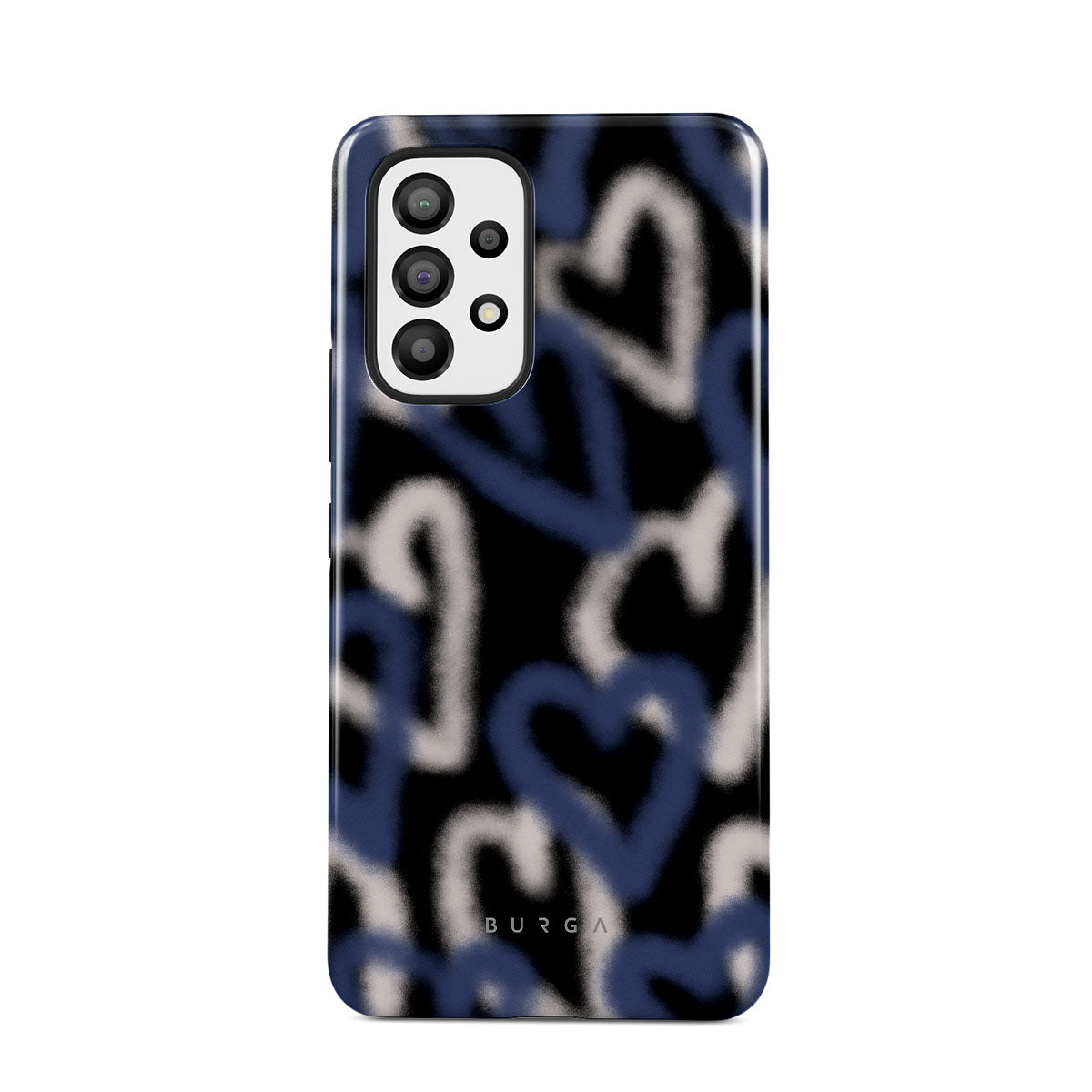 The Lucky You Samsung Galaxy A73 phone case captures the raw, unfiltered pulse of street art. Graffiti hearts in striking blue and white stand out against a black background, their edges softly faded. It’s a design that speaks to the restless who find beauty in chaos and dare to be different.