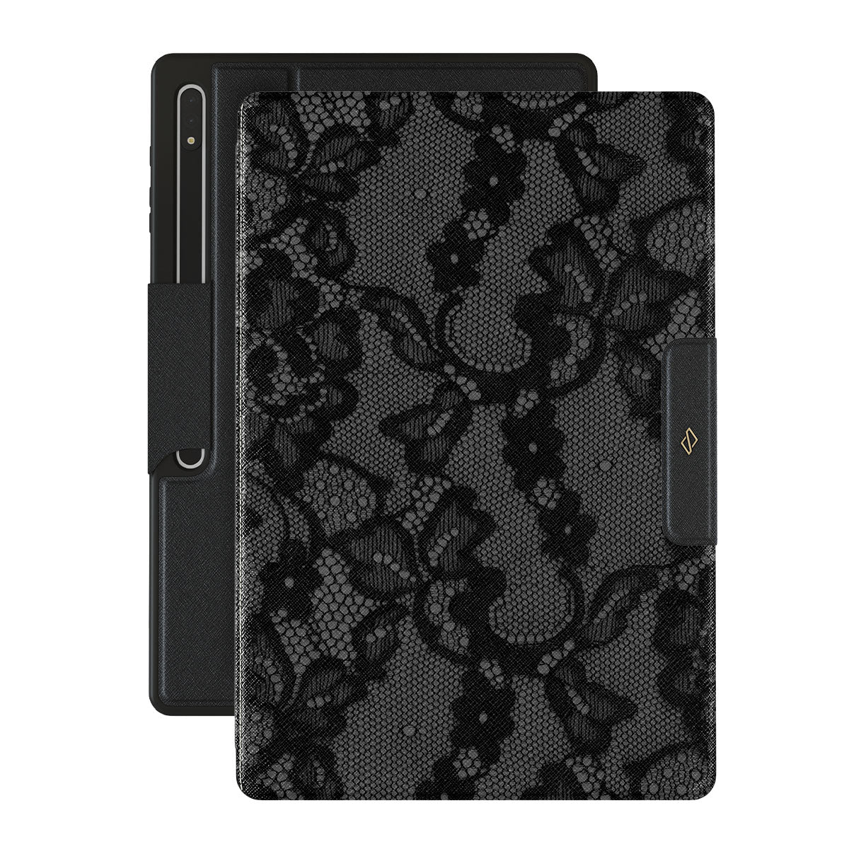 Inspired by the intricate patterns of lace gowns, our Magnetic design is perfect for those with a love for the drama and romance of old Hollywood. This Samsung Galaxy Tab S10 Ultra folio caseis a statement of effortless, mysterious femininity, turning you into the main character where you go.