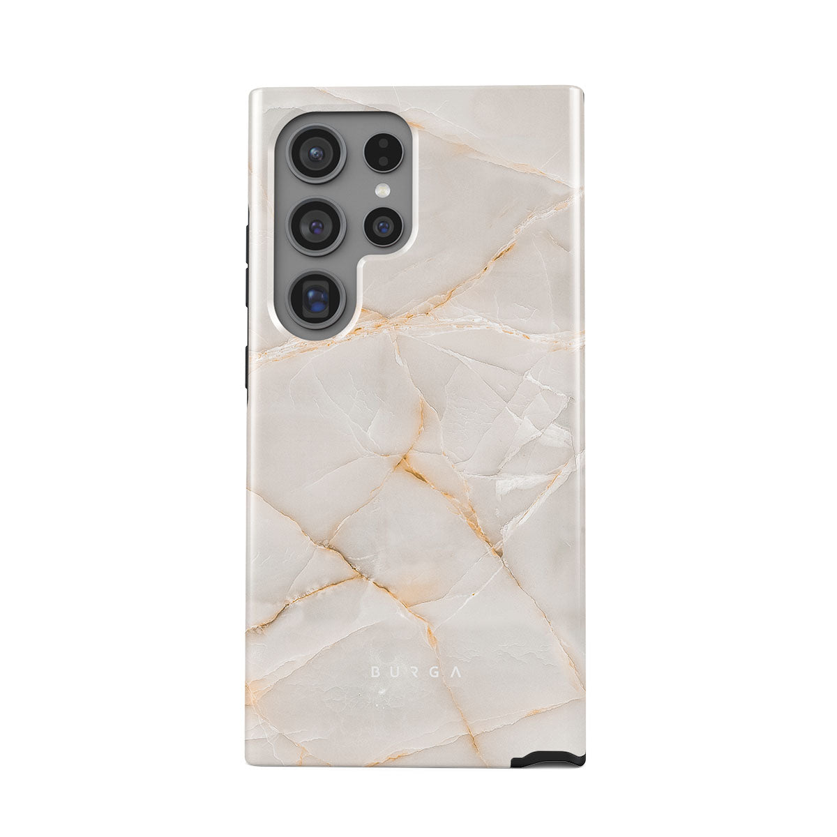 The Vanilla Sand Marble Samsung Galaxy S24 Ultra phone case cover features a marble design with creamy canvas showcasing beautiful golden hues. The soft-toned case will add a touch of luxury to the device while protecting it from dangerous falls.
