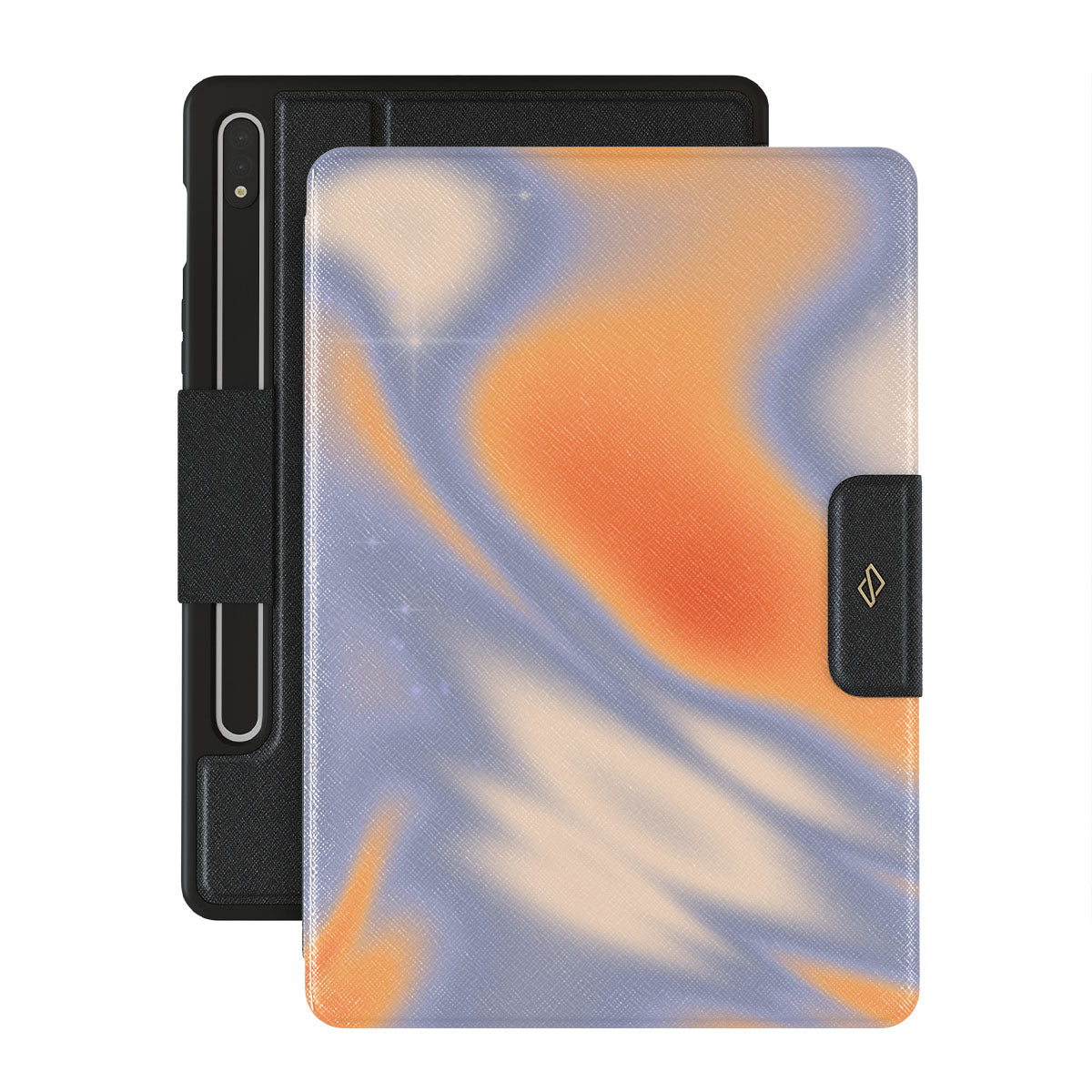 Magnetic gray rays encounter fiery orange bursts, merging nature's drama with high-fashion flair. In meteorology, a nimbus cloud heralds rain, symbolizing rebirth and fresh starts. Drawing inspiration from this, our Nimbus folio case design ensures you are the center of attention—wherever you go.