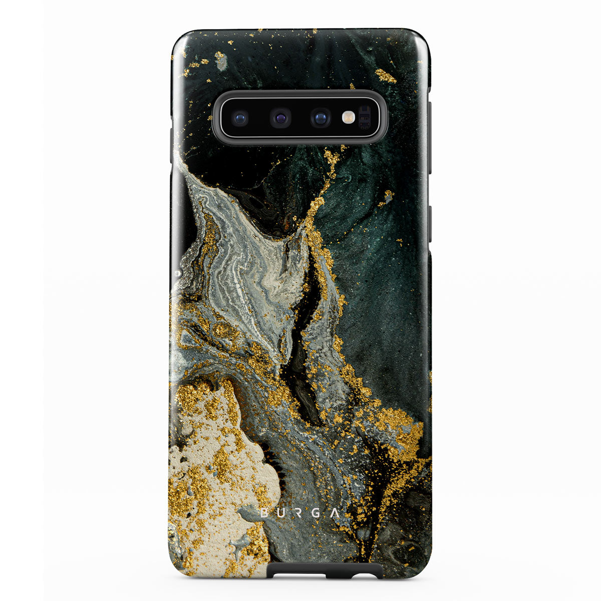 Our cute marble Northern Lights Samsung Galaxy S10 phone case showcases a combination of moss green shades in a marble pattern enriched with golden specks. The asymmetrical design reminding of a star map will add a touch of luxury and mystery to every accessory lover's collection.