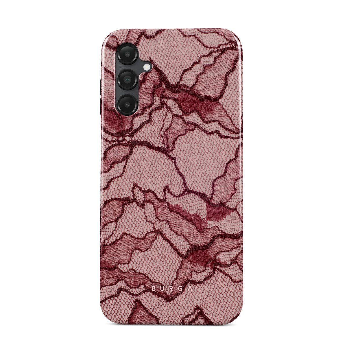 Channel your inner power with our Office Siren Samsung Galaxy A25 phone case design. A soft rosé backdrop and dark pink lace blend elegance and boldness, perfect for those who make quiet yet undeniable statements with confidence.