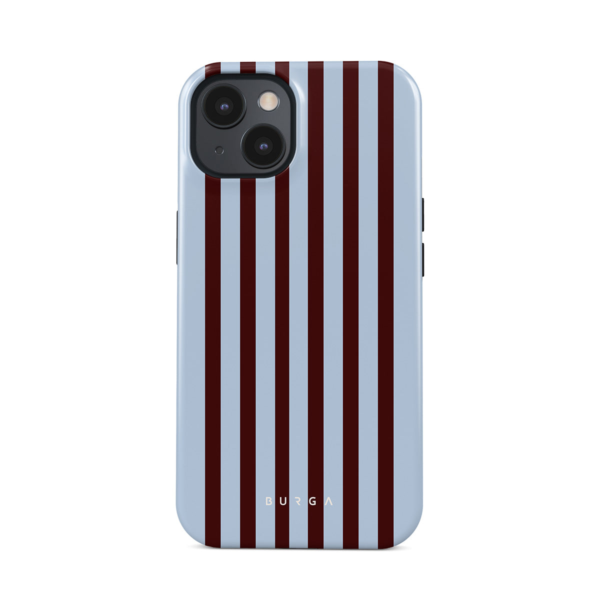 Brown, blue, and emotionally unavailable. This striped iPhone 13 Mini phone case design says, “I turned off my Slack notifications and found inner peace.” Or at least a cute aesthetic.