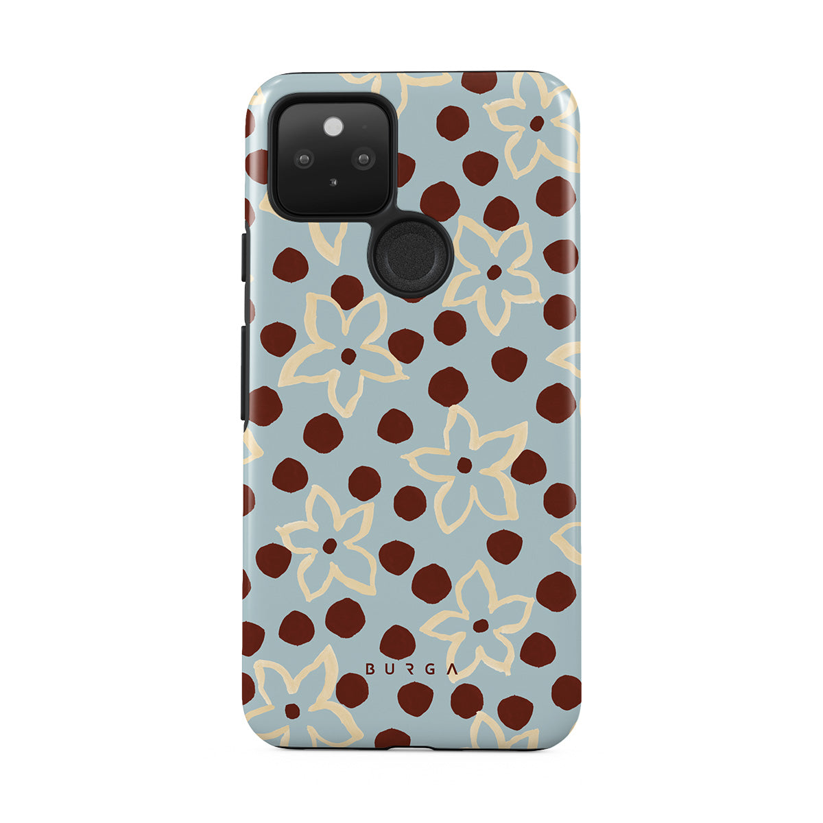 The Frutaria Google Pixel 5 phone case design design: retro surf motel wallpaper meets vintage ceramics. The soft florals, earthy dots, and cool-toned palette give major “forgotten seaside town in the ‘70s” energy.