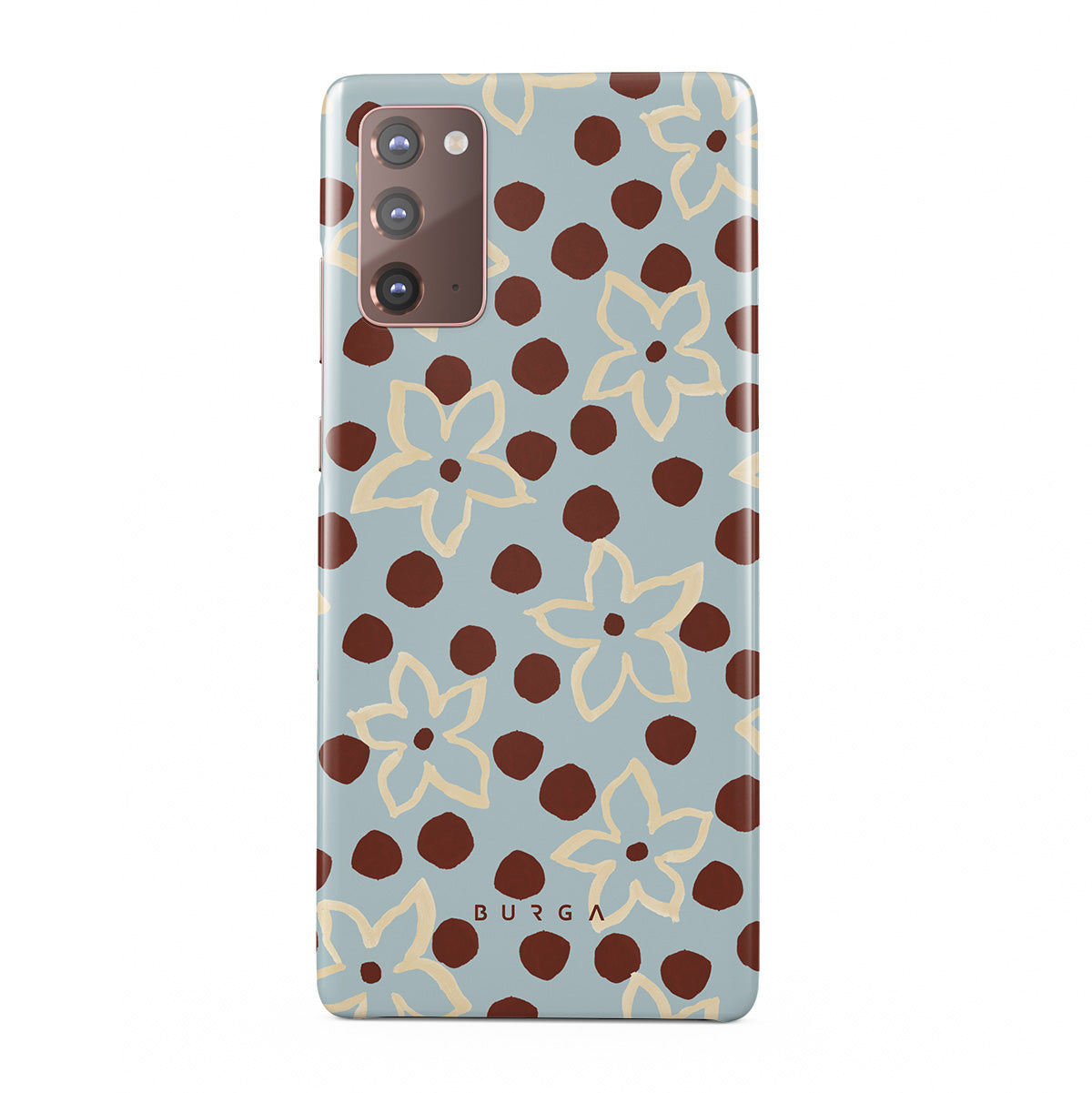 The Frutaria Samsung Galaxy Note 20 4G / 5G phone case design design: retro surf motel wallpaper meets vintage ceramics. The soft florals, earthy dots, and cool-toned palette give major “forgotten seaside town in the ‘70s” energy.