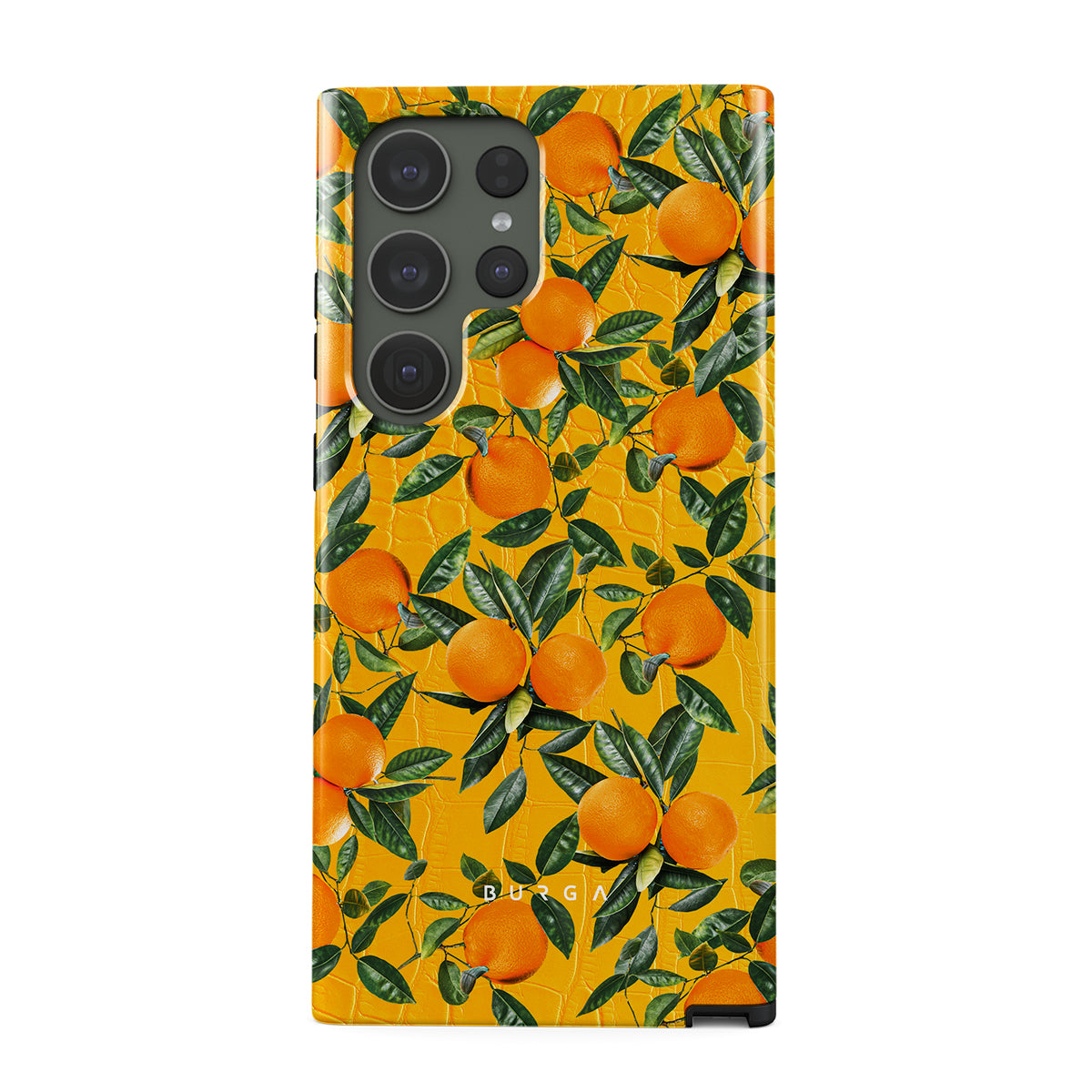 Orange Lemonade Samsung Galaxy S23 Ultra phone case showcases a unique combination of vibrant orange croco design with plenty of mouth-watering oranges on top. With this energetic design, protect your phone and keep your spirits up.