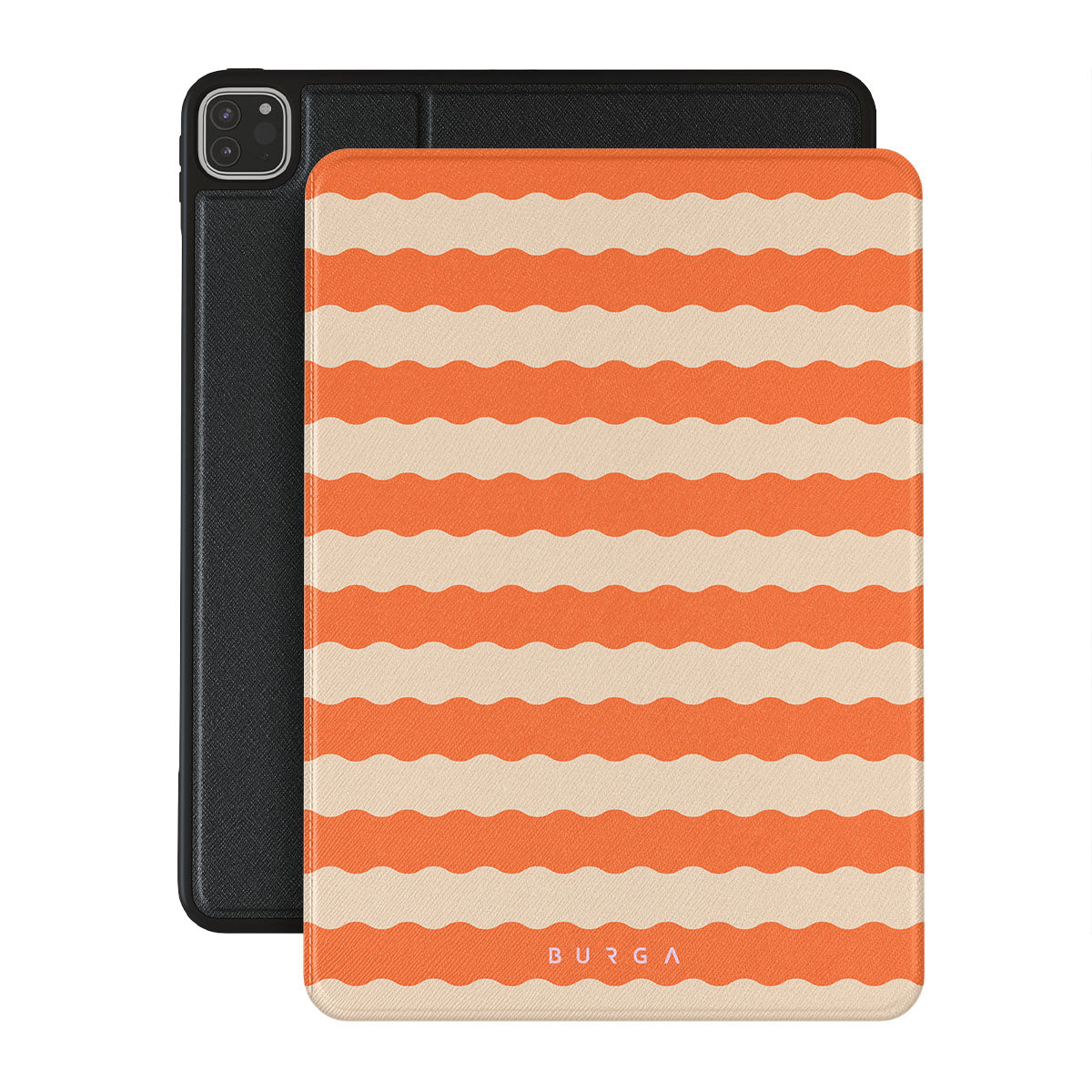 Unleash the tropical heat with the our Papaya design—a sizzling iPad Pro 12.9 (6th/5th Gen) folio case that electrifies with fiery, wavy stripes of juicy papaya orange and smooth, creamy beige. Perfect for trendsetters craving a daring, sun-soaked style.