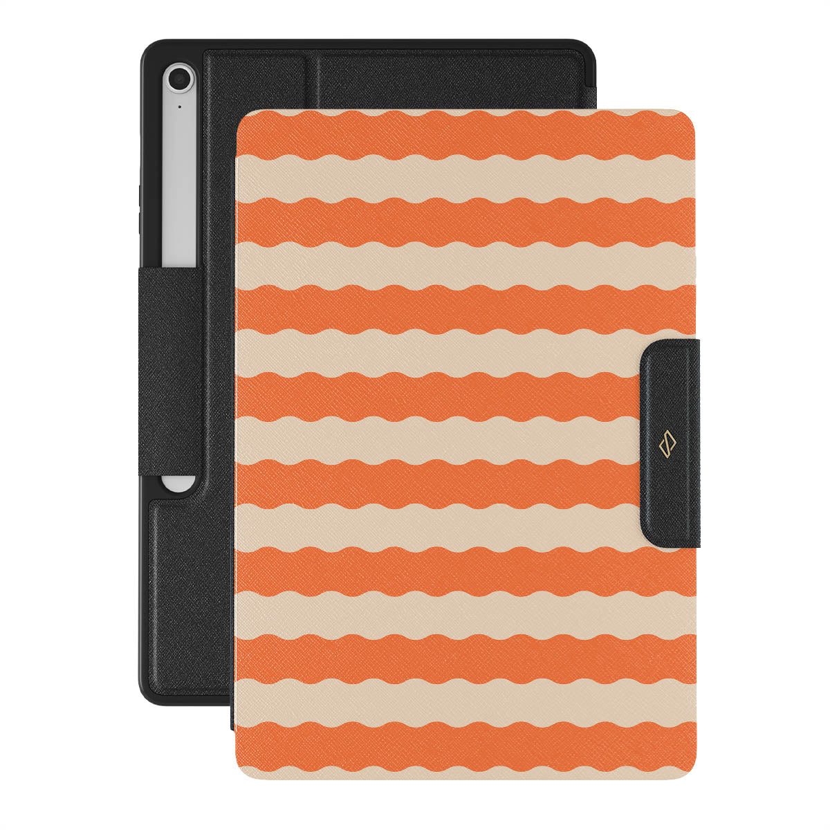 Unleash the tropical heat with the our Papaya design—a sizzling Samsung Galaxy Tab S10+ FE folio case that electrifies with fiery, wavy stripes of juicy papaya orange and smooth, creamy beige. Perfect for trendsetters craving a daring, sun-soaked style.